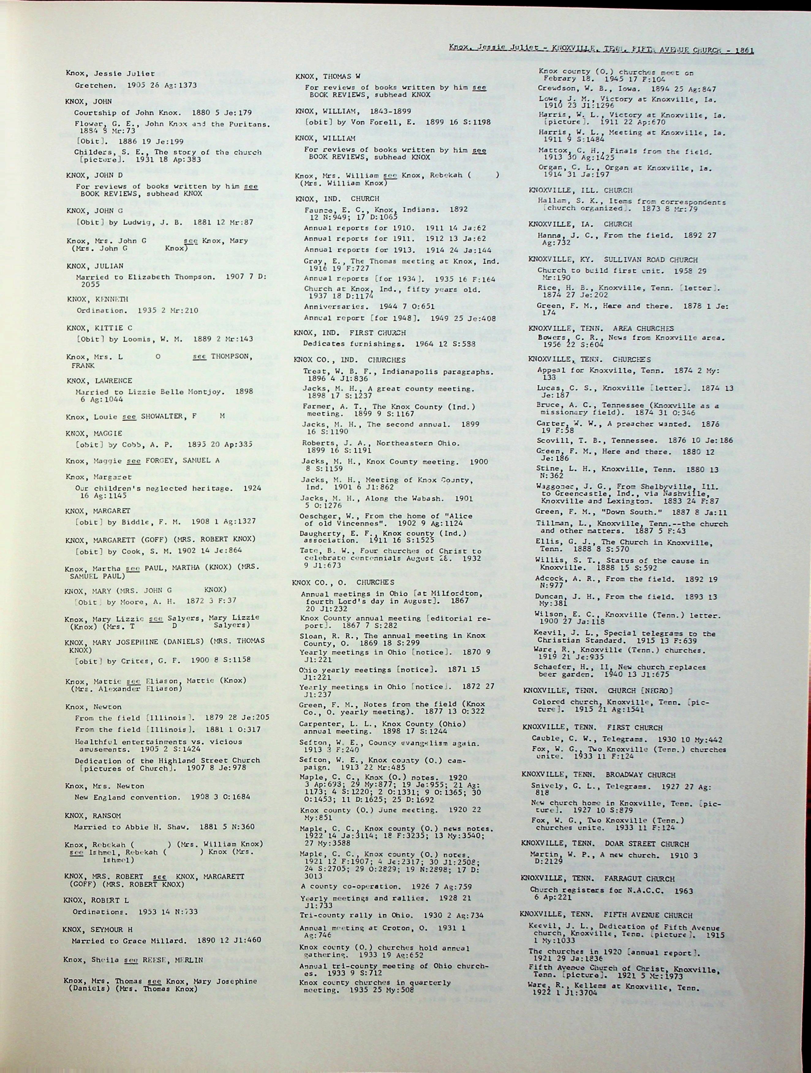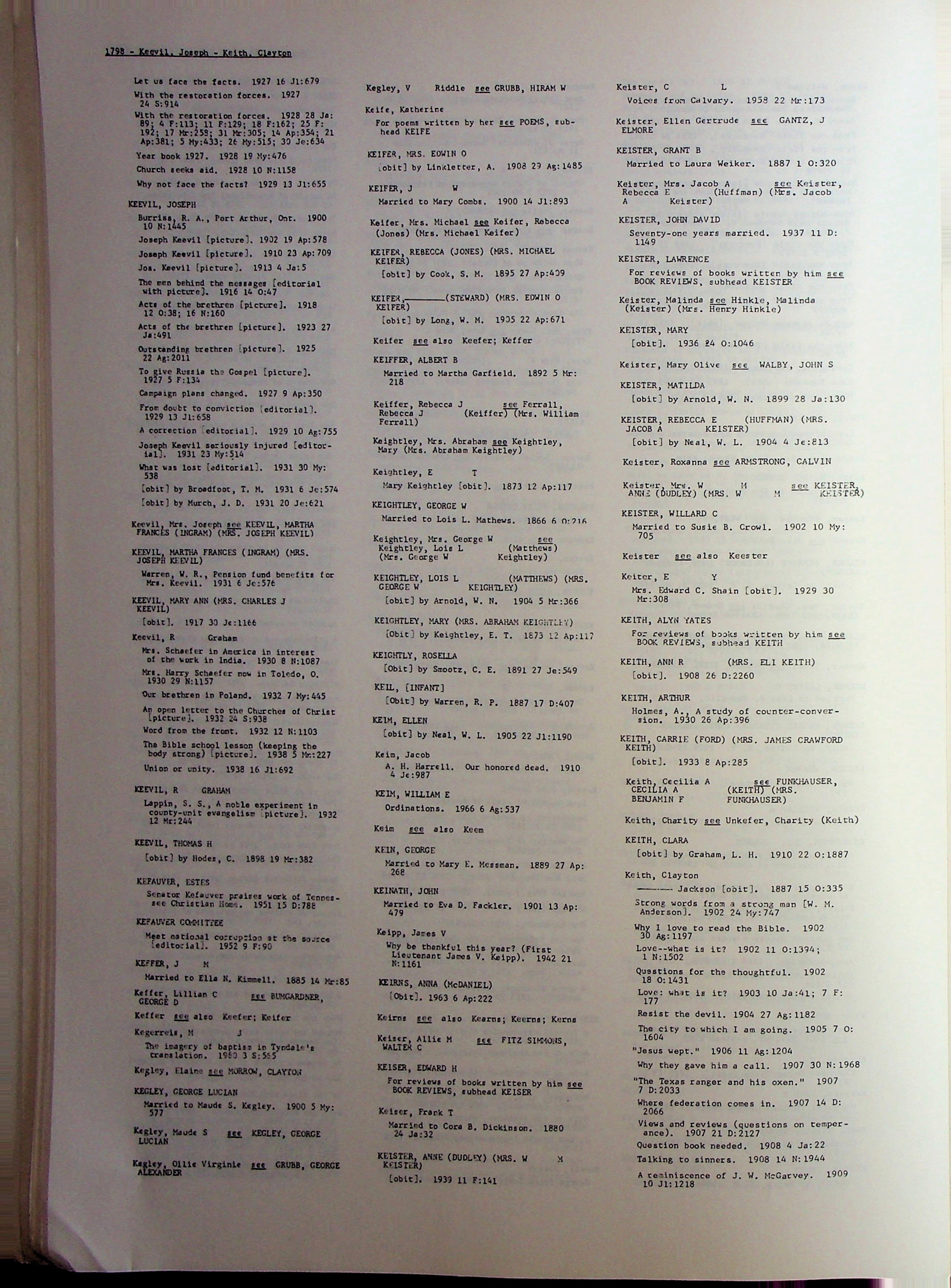 Christian Standard Index 1866-1966 |Letter K, Kenedy - end of K | Pages 1795-1868