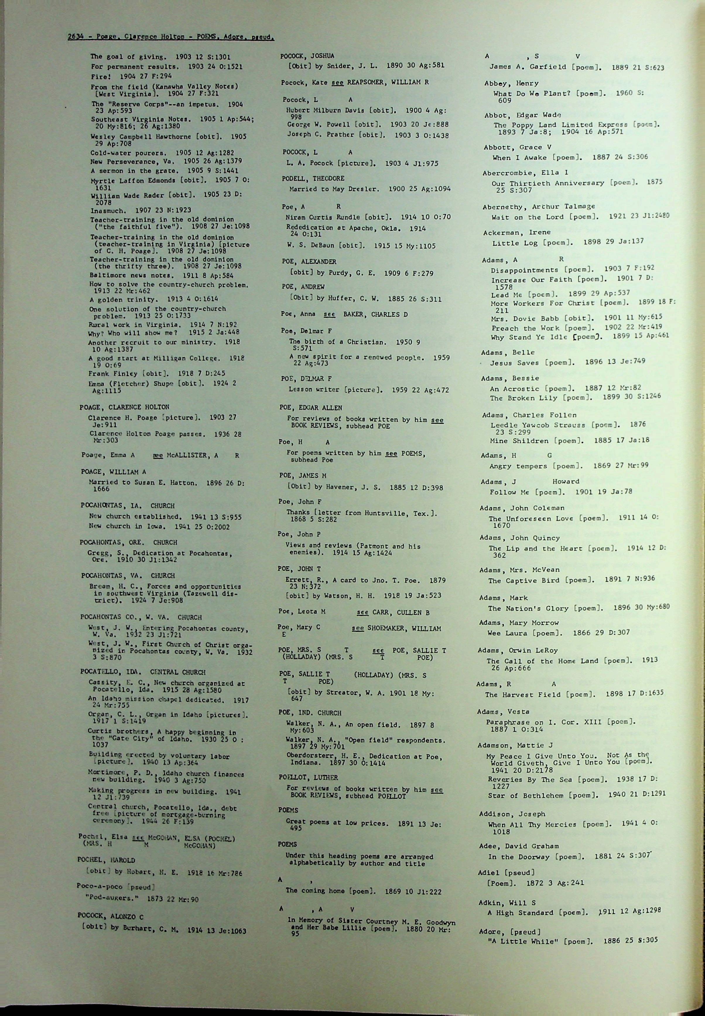 Christian Standard Index 1866-1966 |Letter P-Poems, Borthwick| pages 2522-2645