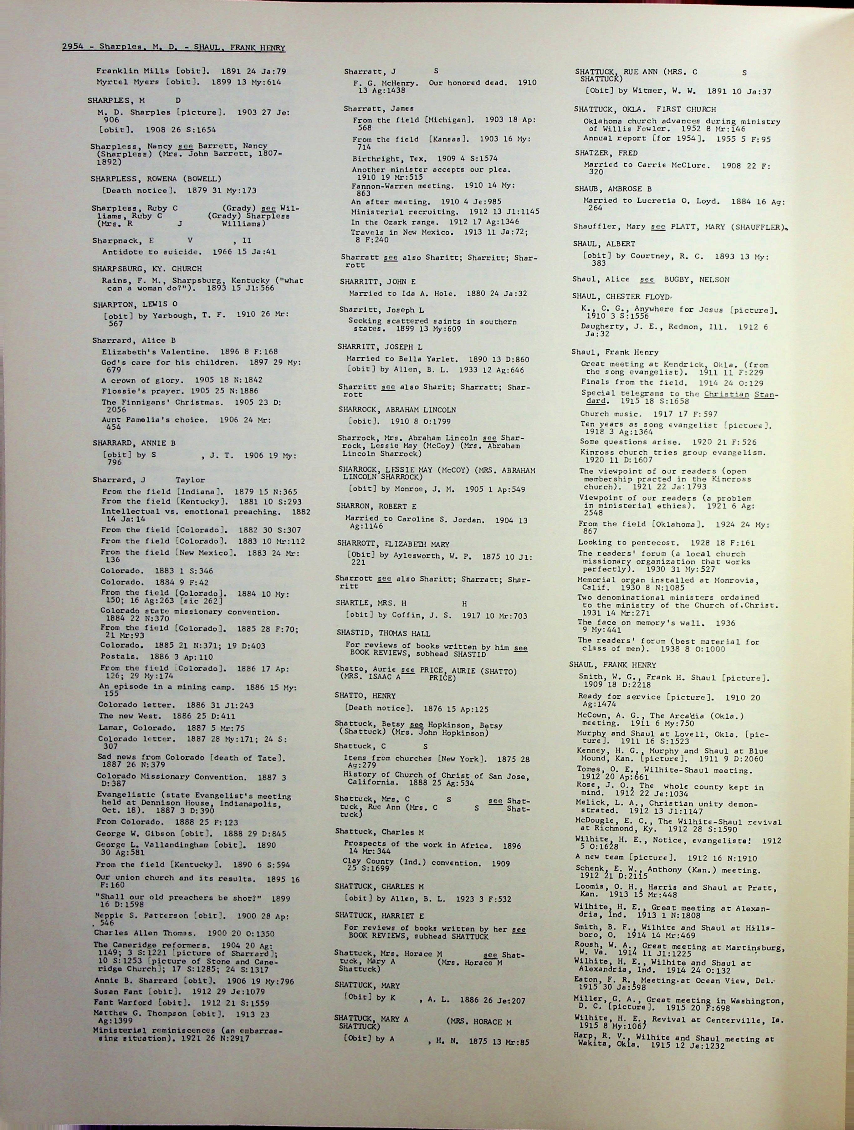 Christian Standard Index 1866-1966 |Letter S-Sheets, H|pages 2876-2958