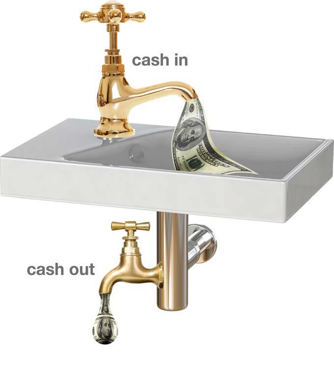 The spigot opens, and your company receives cash from one of the sources listed above.