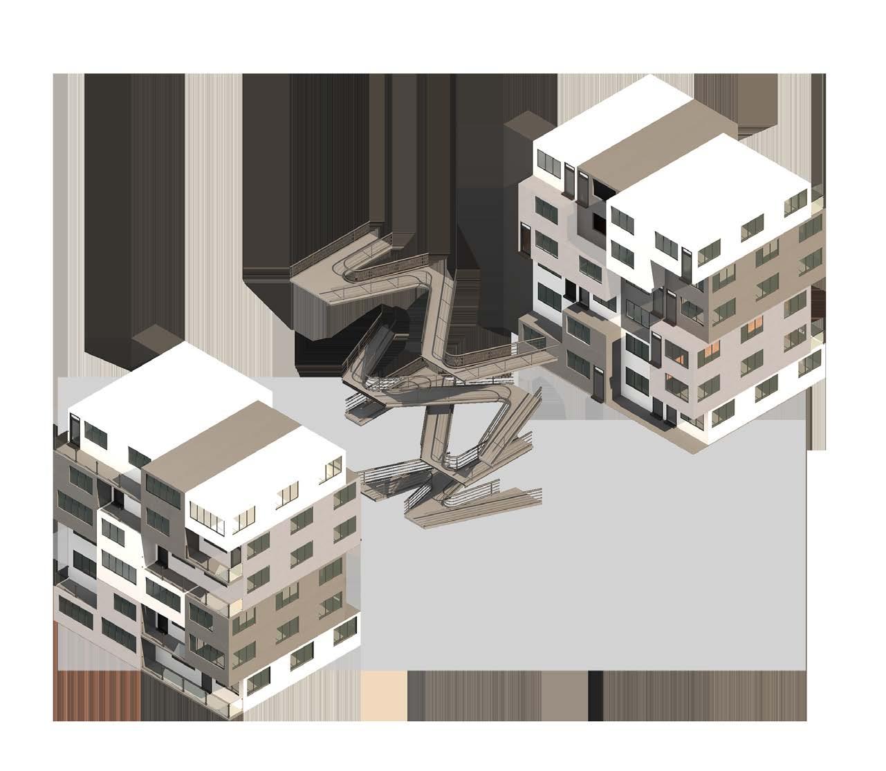 Affordable housing, “intertwined” circulation