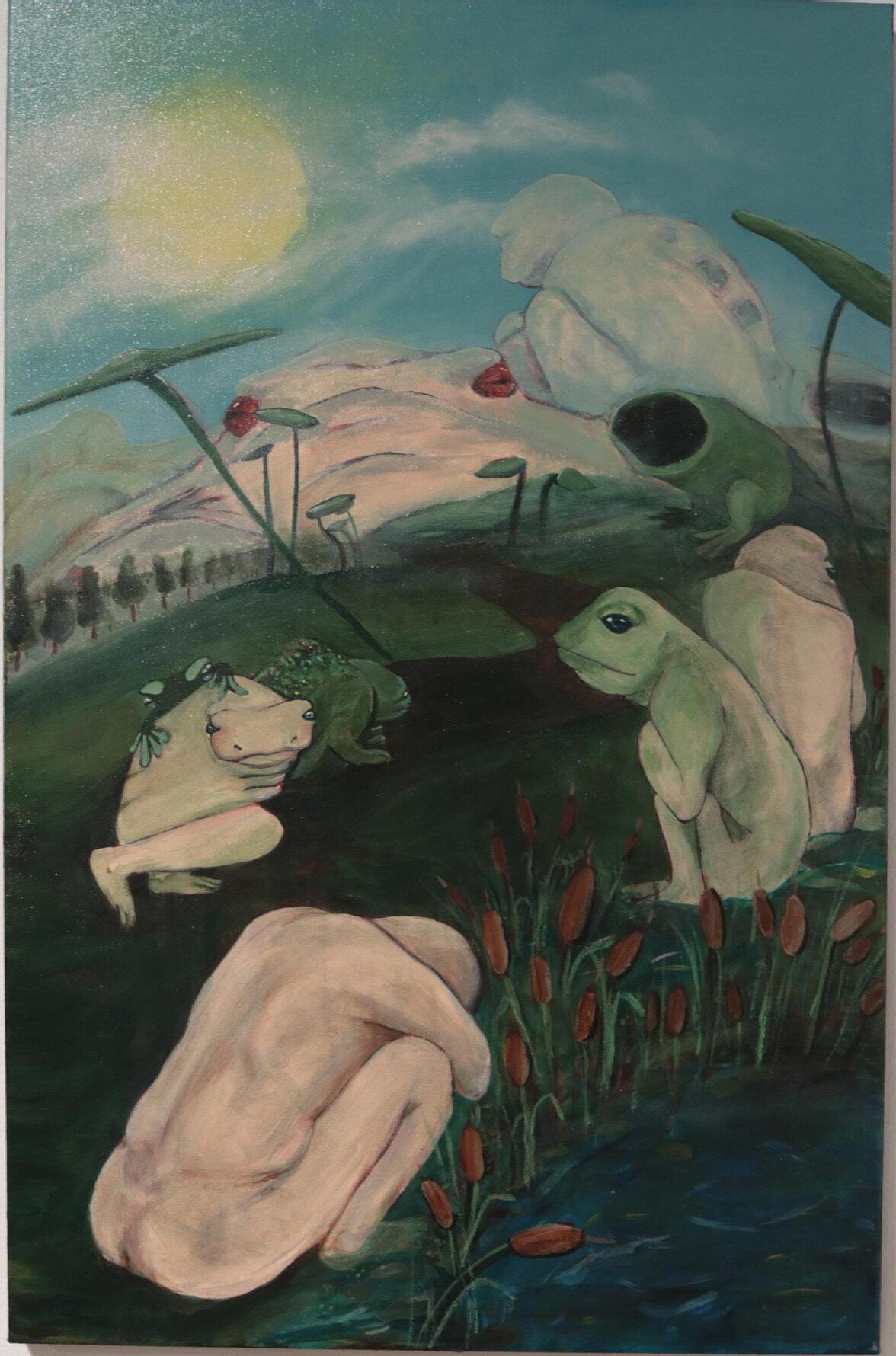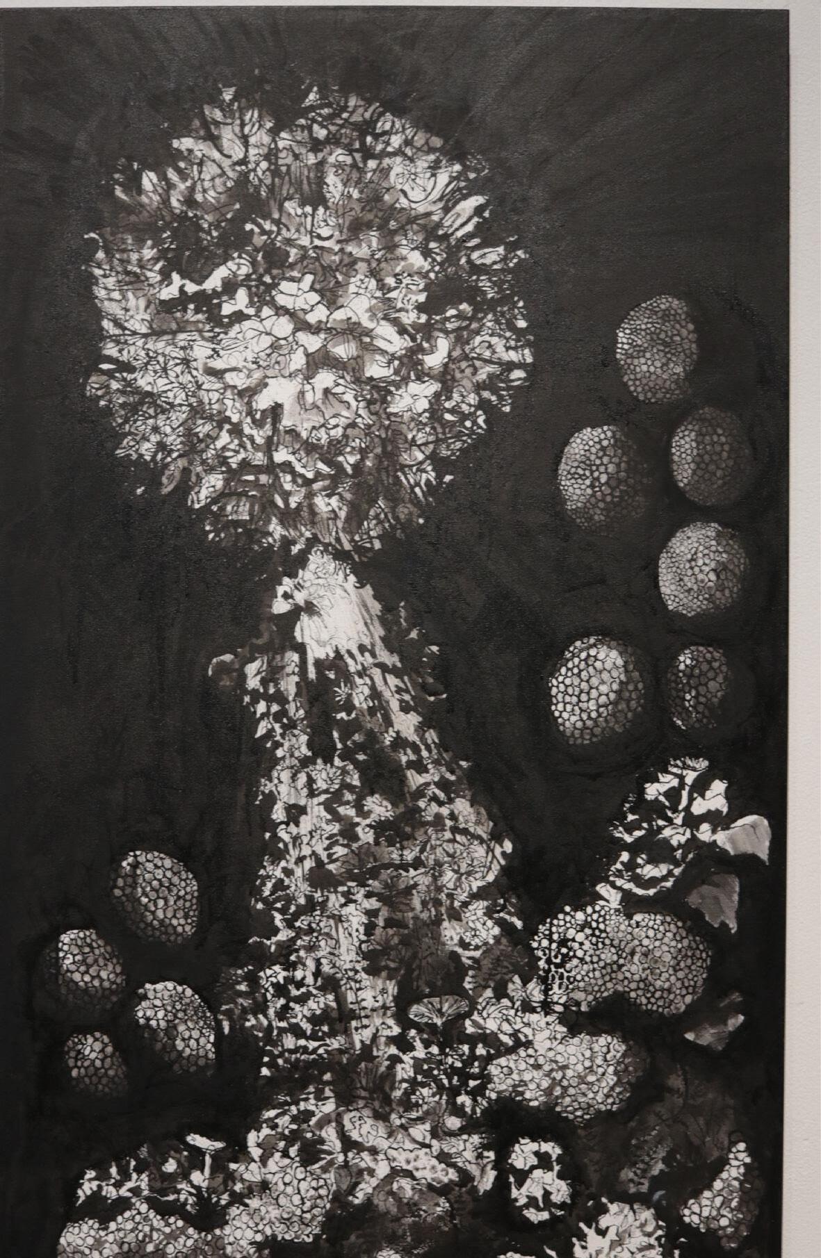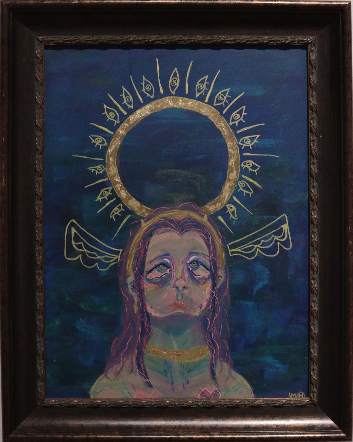 My submission to this years exhibition is a painting that I made over the last two years (‘21-‘22). I created this piece during a period of great change and betterment in my personal and professional life which resulted in something I find directly representational of this period. The central two figures are the embodiment of duality. Surrounding these figures are many different characters, settings, and symbols which are meant to speak on my own personal philosophies, desires, crutches, sacrifices and oppositions.