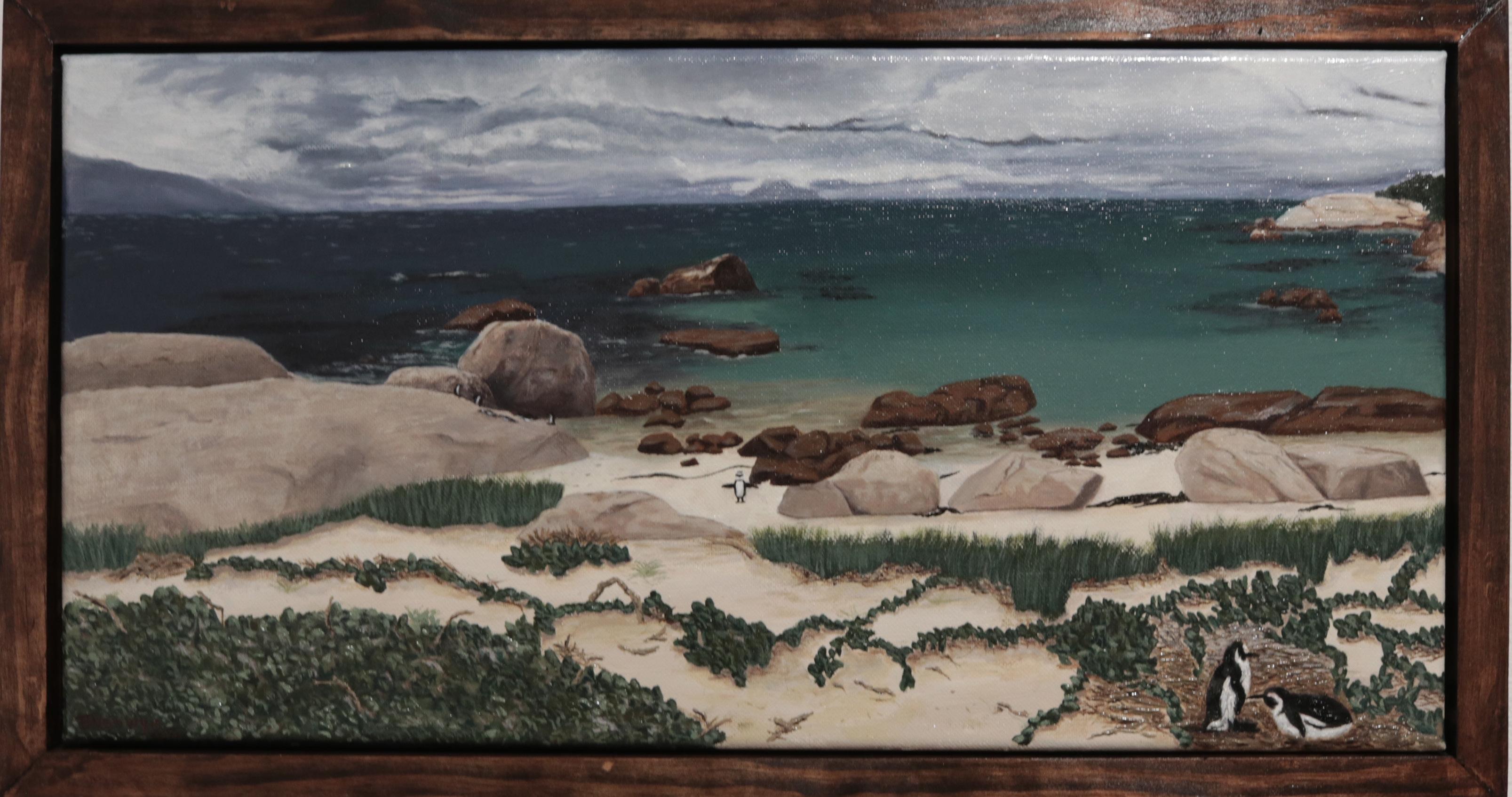 Brooke VanWye Penguins on Boulder Beach oil