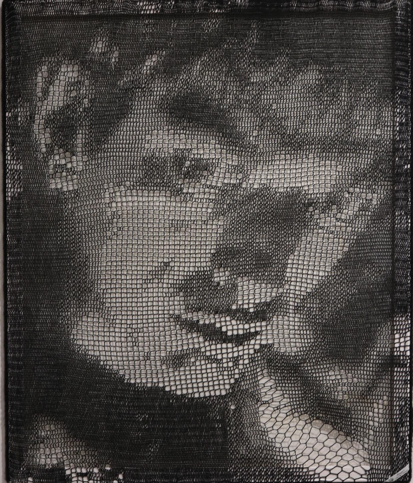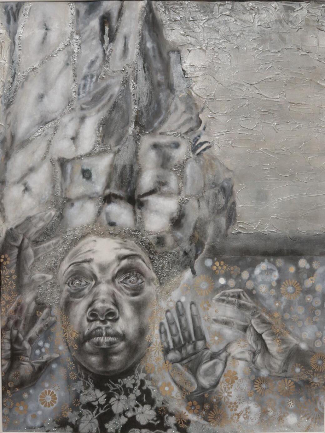 Acrylic, Charcoal on Quilt