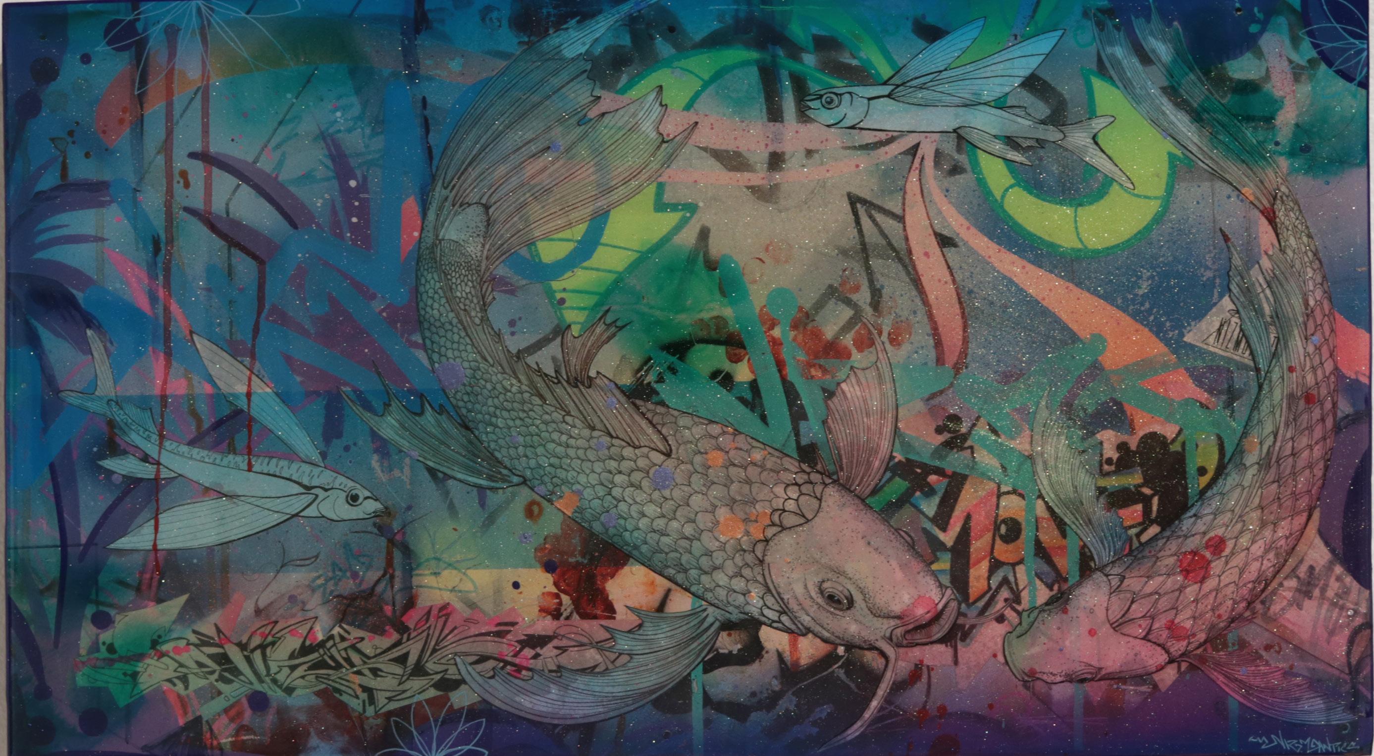 Kissing Fish mixed media