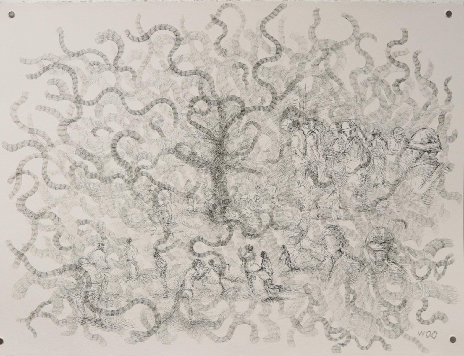 Dwelling Fossil silverpoint, goldpoint, acrylic