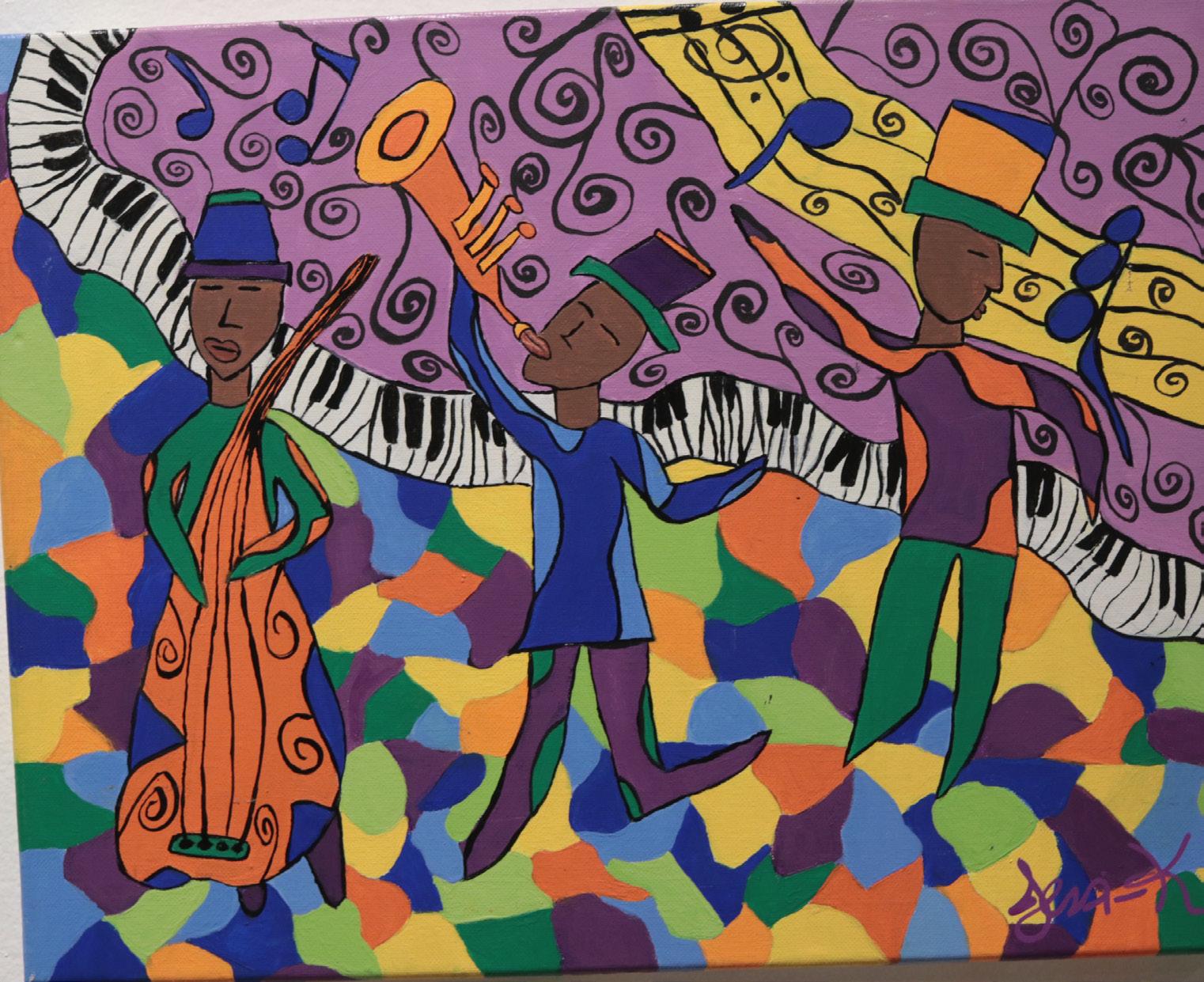 Jessica Rigdon 3 Jazz Dudes Jammin’ acrylic 2015