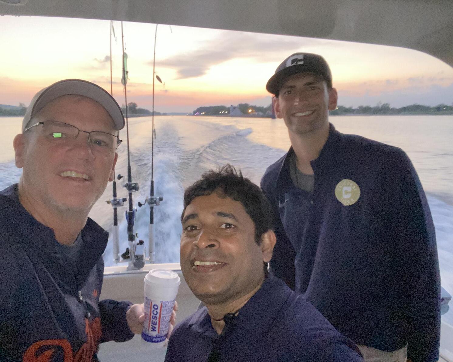 Dr. Bridges fishing with Cathedral's own Fr. Jomy and Br. Matt on Lake Michigan. Bridges leads by example and said, " I really hope all of our educators see me as just a regular person. I try to be sincere in being with them, listening to them, and helping them in any way I can. This has always been important to me, and I believe we are all called to show kindness, and that best comes through humbly listening."
