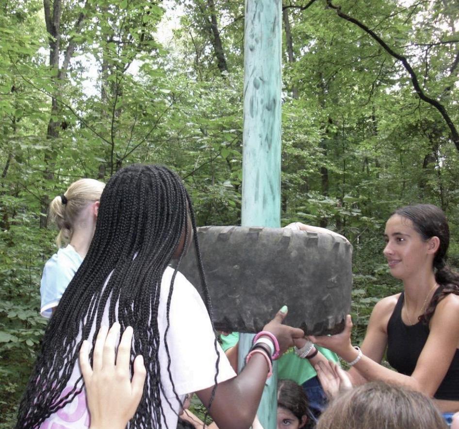 Irish Adrenaline members work together during a team-building challenge at camp, strengthening trust before the start of competition season. Activities like these help new members bond with returning ones, creating foundations for sisterhood. By the end of camp, all the laughter and teamwork fills them with the beginnings of friendships.