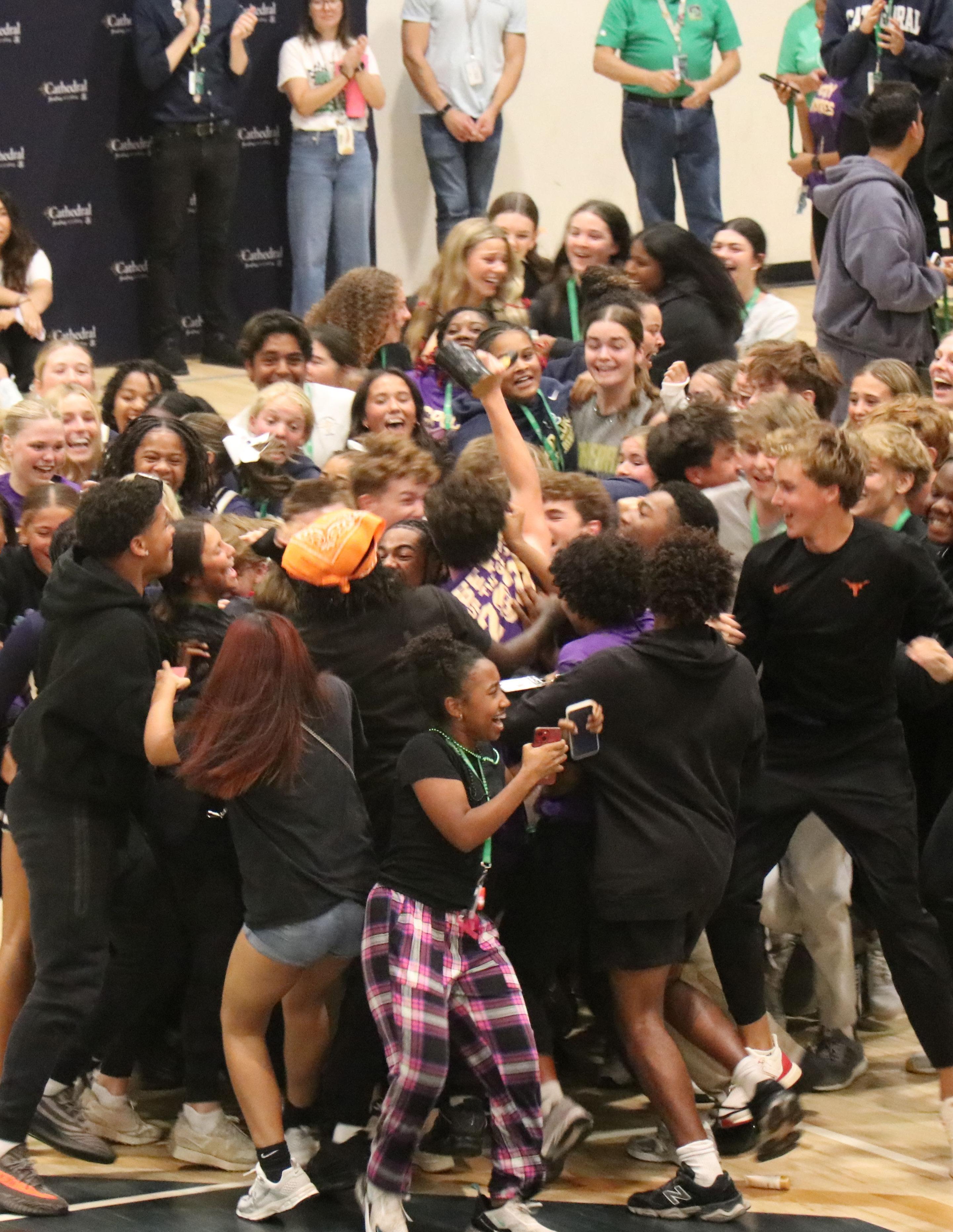 The class of 2028 celebrates after pulling off an incredible upset and winning the spirit stick at the end of Homecoming Week. The seniors placed second, and the freshmen third. There is a chance the sophomores end up as three time champions seeing as the junior class finished last and would take an unbelievable effort next year to go from 4th to 1st.