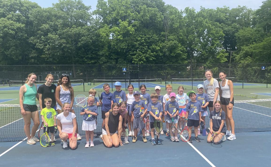 Cathedral student coaches and campers line up at the tennis courts for a group photo. Kiernan Fahey ‘26 (farthest to the left) helped with the organization and brainstorming of activities at the tennis Camp Cathedral.