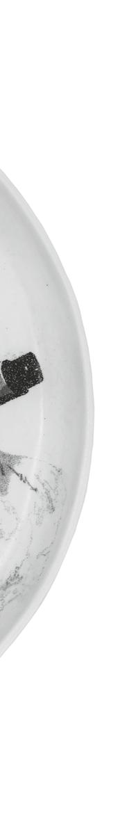 Όνειρο θερινής νυκτός (από την ενότητα Η σούπα), μολύβι και μελάνι σε χειροποίητο πορσελάνινο πιάτο, 25x25x5εκ. 2023.