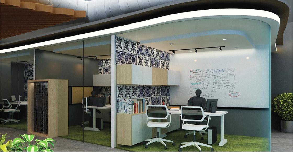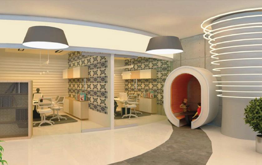 Interior design for the IT office of DBS Bank, in Hyderabad.