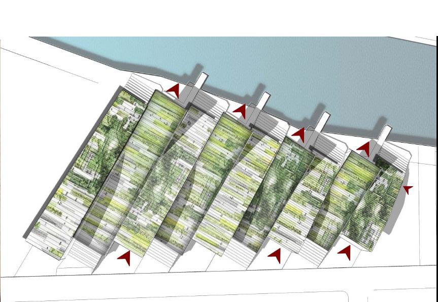 The stepped profile of thge built form pays homage to the hills visible from the site.