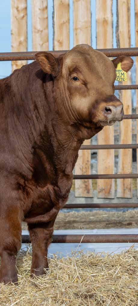 The only red Horse Power son we have in the group this year. A lighter colour bull may stand out in a pen of dark red bulls but he should also catch you eye because of how correct he is made! This young bull put together very well and comes with a great set of EPDs. His dam 78E is a very productive cow from the Jace Cattle and she’s got a beautiful udder and is a very functional cow. Moses is late February born calf but he fits right in with all the January born bulls in the pen.