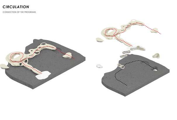 provides a closer look at the layout of the proposal on the site, showcases the use of found figures