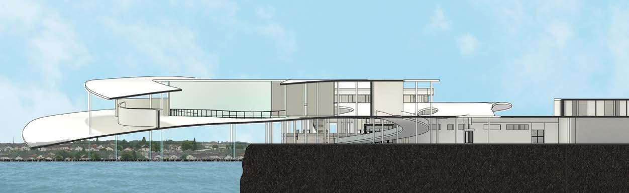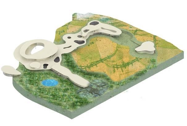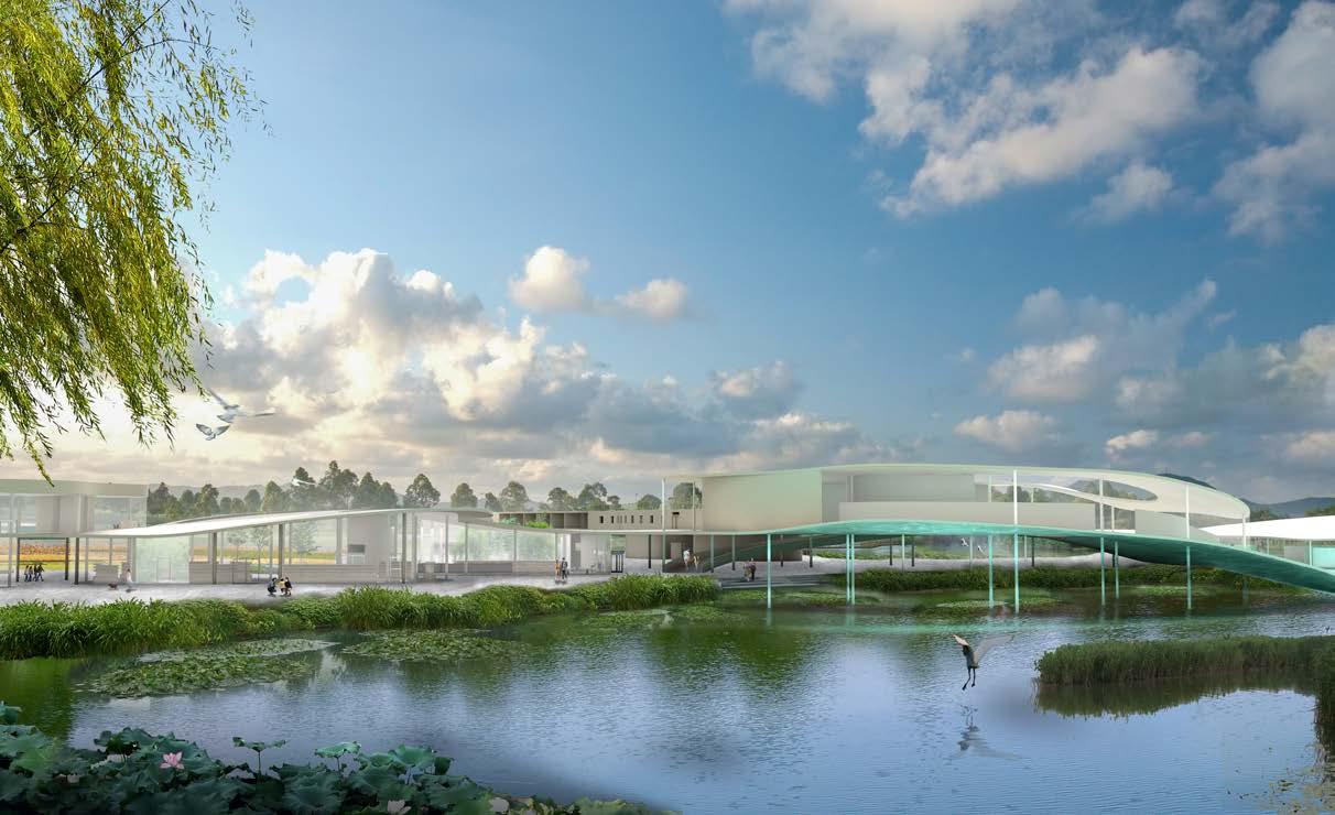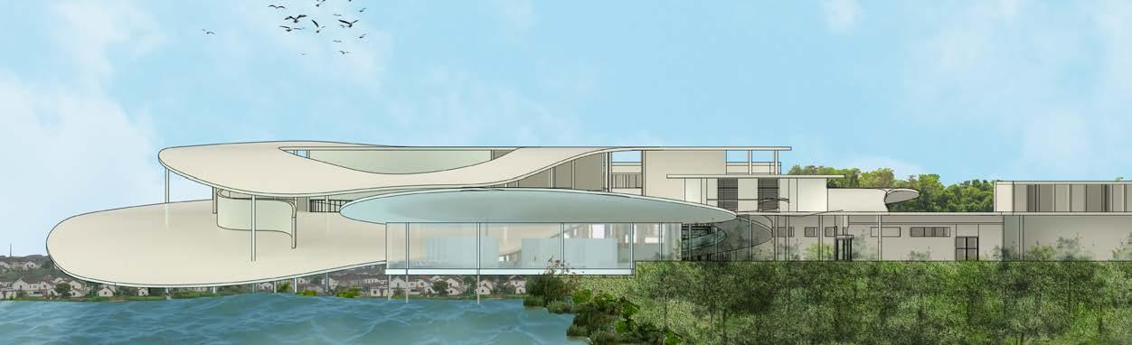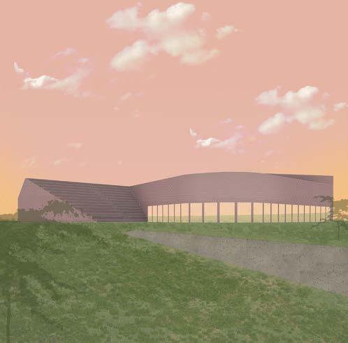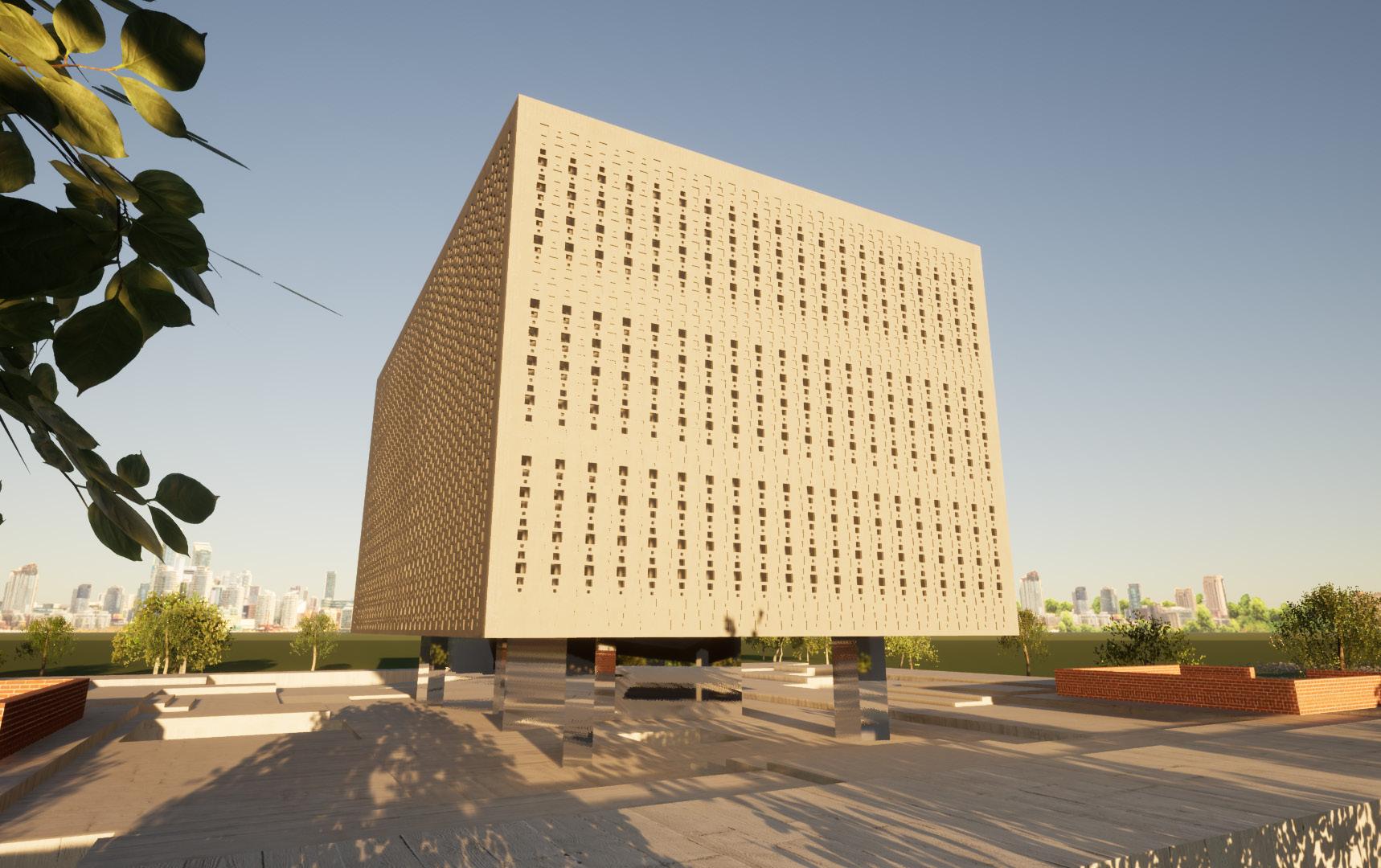 exterior render exterior render of the immediate site of the museum along with the museum itself, showcasing the materiality and facade design