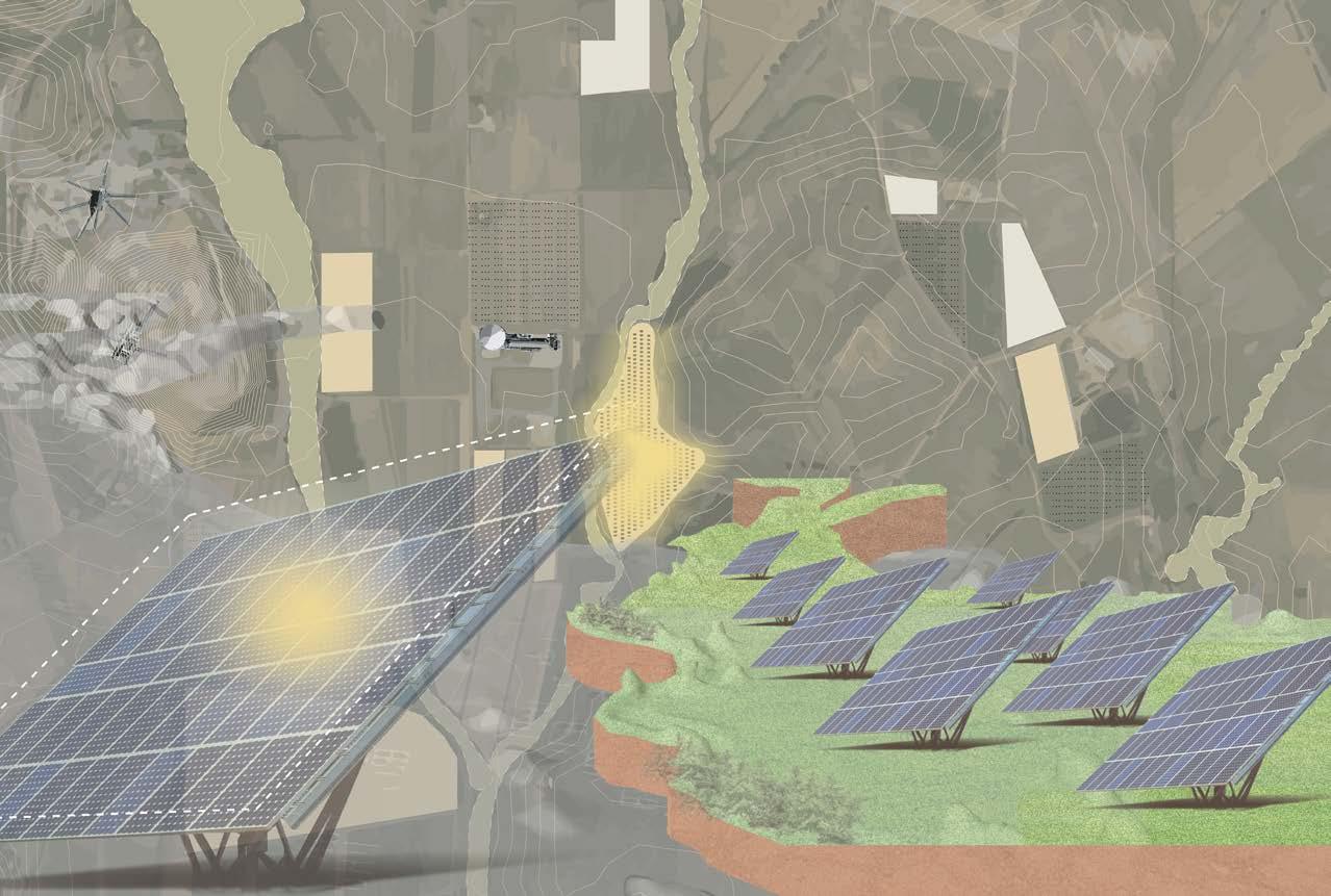 initial research focusing on productive ground, the initial research phase of this project led us to the use of sustainable energy in italy, specifically in the maremma region. during this phase, research was conducted on solar panels in the area, the conditions of the land and what is needed for proper maintenance of solar energy, etc. the main case study for this phase was a solar energy farm in a small town north of grosseto.