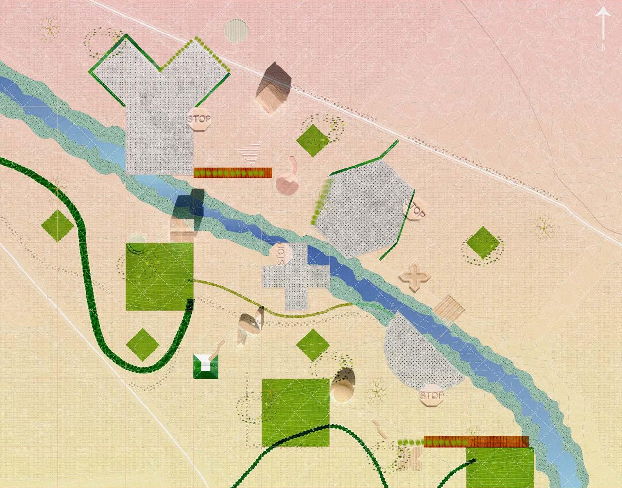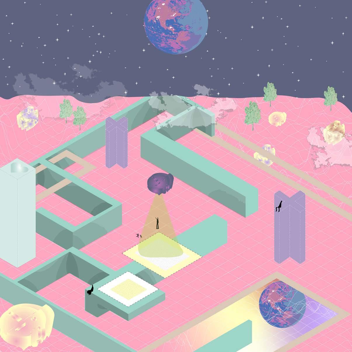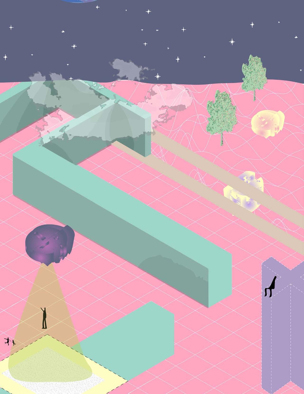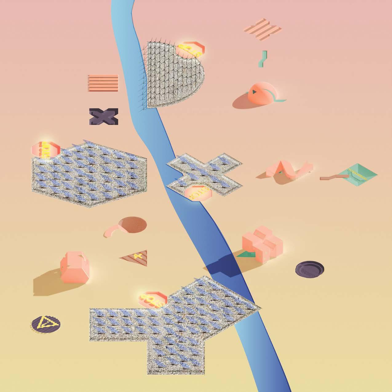 System Overload is a project that creates spaces of wonder and exploration through design methods such as scattering, fragmentation, projection, and layering. It is a proposal concerned with found figures, specifically Italian road sign geometries, which are then superimposed on two different grid systems overlayed in different angles. Although scattering of figures is a main component of the gardens, the grid systems allows us the scatter the figures within certain parameters that are laid out. This also helps one visualize the grid by seeing how these figures are layed out, making the invisible grid a visible component. Instead of just warning caution, this project embraces and relays the realities of energy production and consumption, encouraging people to consume green energy by showcasing the power and sustainability of solar and wind power and hydroelectricity. These gardens use the energy of the site as a commentary to show how people can produce large amounts of sustainable energy that can also be playful and aesthetically pleasing unlike the current state of unsustainable methods of producing energy that exist around the majority of the world today. The title “System Overload” is self explaining as it shows that there is so much excess energy being produced in the gardens that it overloads the infrastructure, such that energy is going to waste because consumption is lower than production.