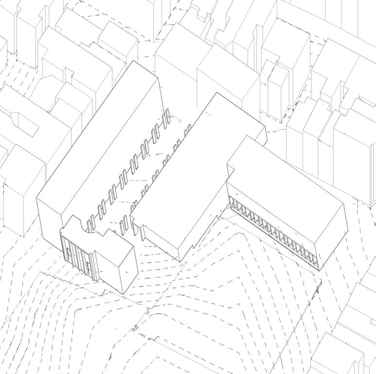 Located in the North End of Boston along the Freedom Trail, this site is by the historic Copps Hill Burial Ground. This library of architectural space takes inspiration from the Uffizi Gallery in Florence, Italy for its form, creating a processional space for users to travel through in relation to the procession of the Freedom Trail.