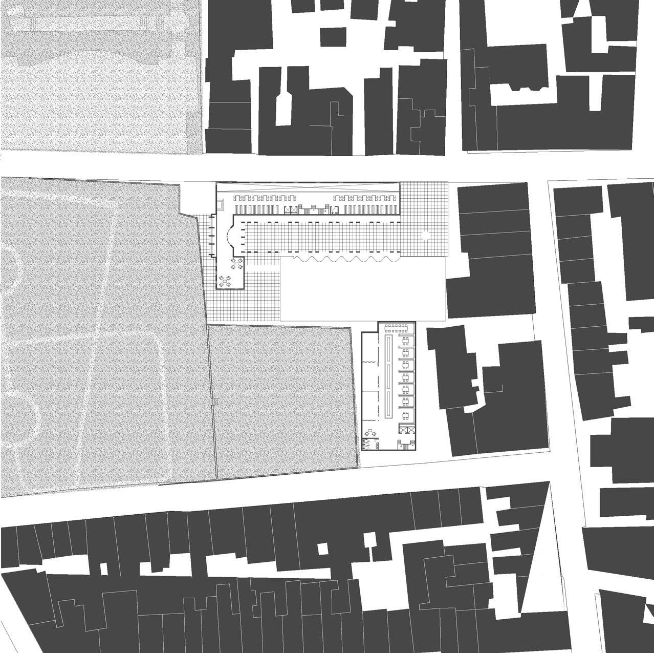 figure ground figure ground of the site and the city of grosseto, showcasing the figural quality of the design in contrast to the surround