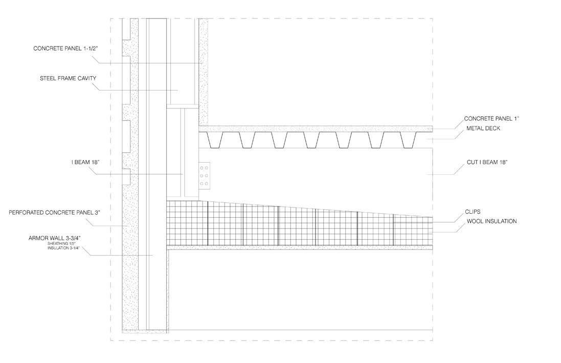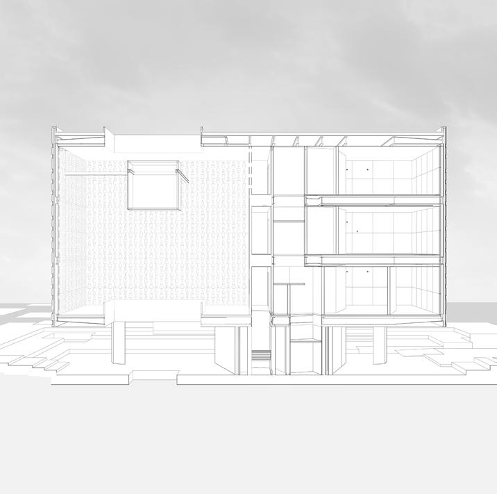 section cut through the sanctum pace, the wall that seperates the sanctum and museum that is occupiable, and the museum space