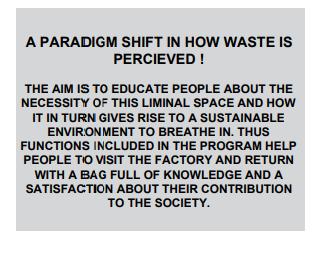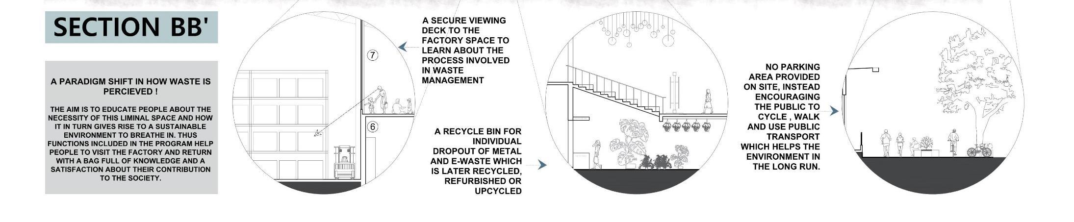 Rethinkingandreimaginingawastesegregationunit alongwithotherassociatedfunctionsthisprojectis integratingtheperformativeaspectsofarchitectureinto thedesign.