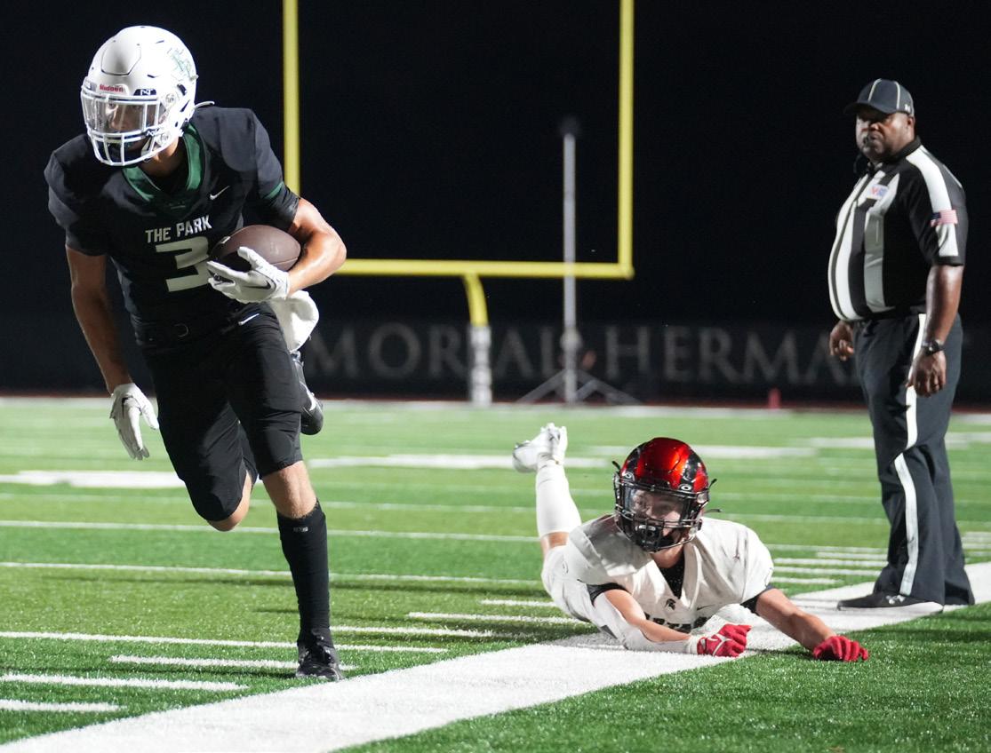 Senior quarterback Jaxon Sims launched himself into the end zone for the Panthers’ only touchdown of the second half on Sept. 8. He gave Kingwood Park a 21-7 lead with the quarterback keeper, but the team fell 27-21 to Porter.