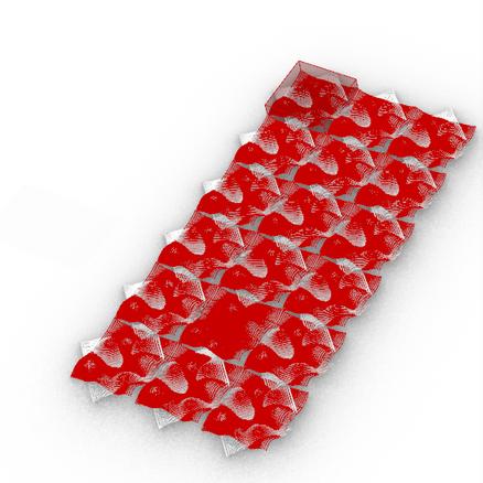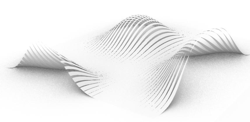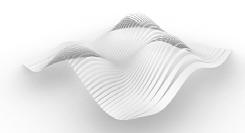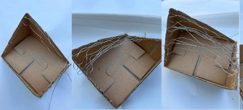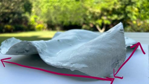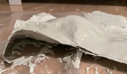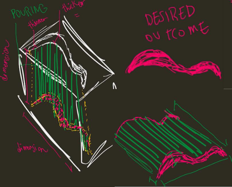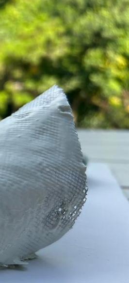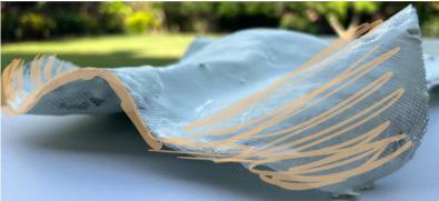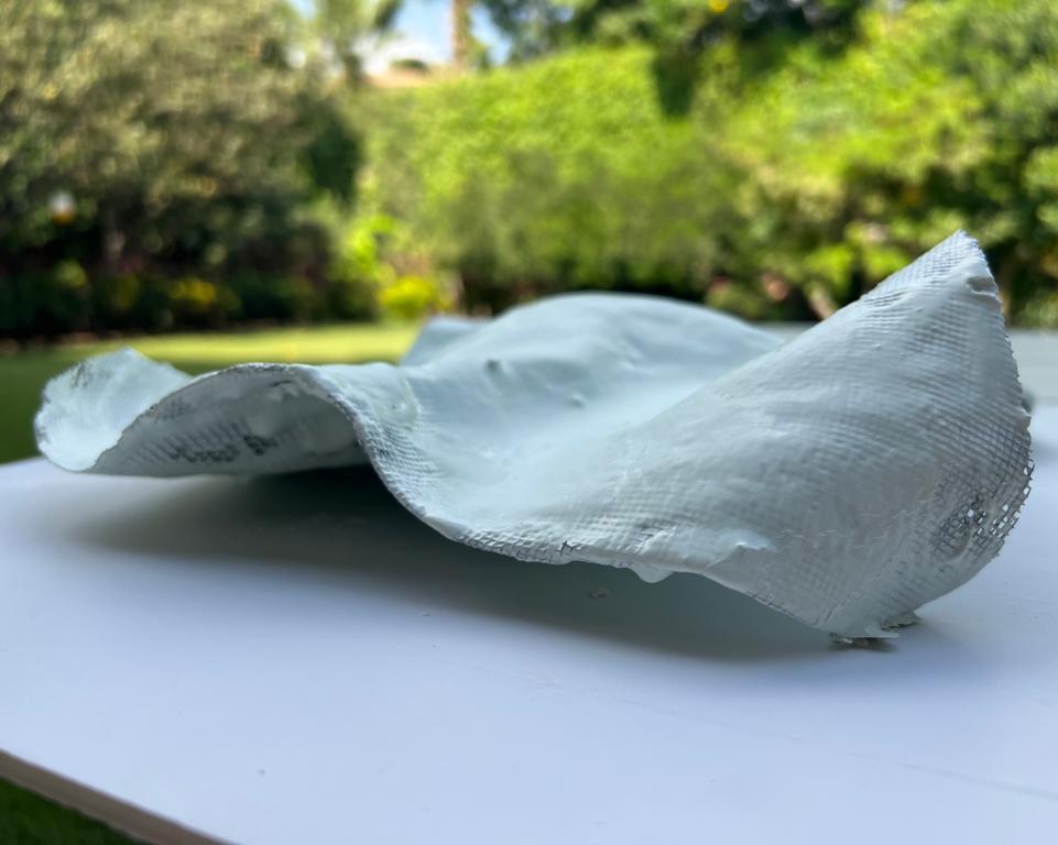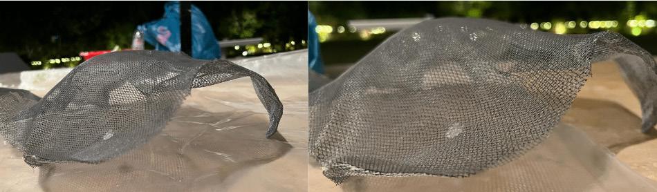 For the first trial in the Material Exploration stage, I was inspired by the following examplesin Fig. 1, 2., and 3., that explain the design process for prototype concrete shells using a hyprid cable-net and fabric formwork (D. Veenendaal). The precedents demonstrate the creation of thin concrete panels: substructure of flexible wire mesh & a lining made of latex sheet which is what determined the panel’s final form.