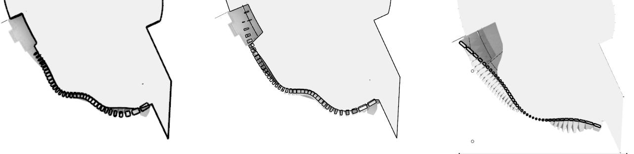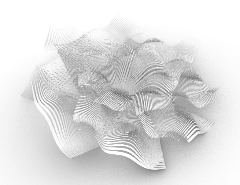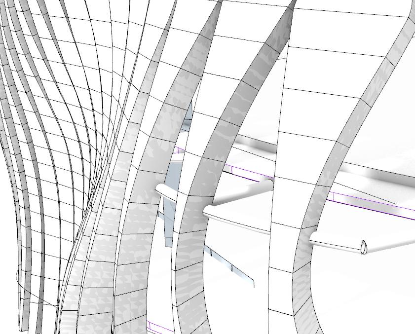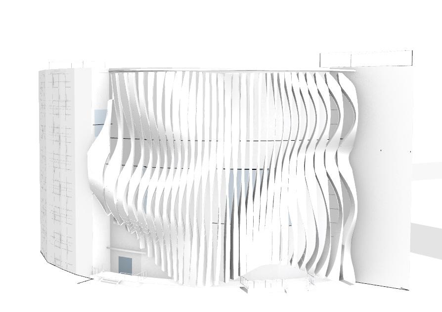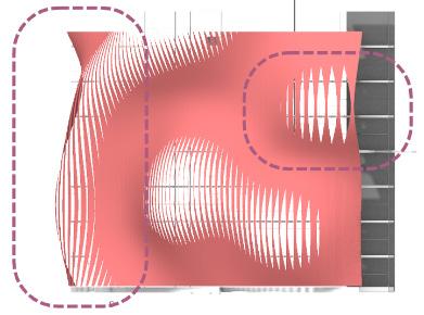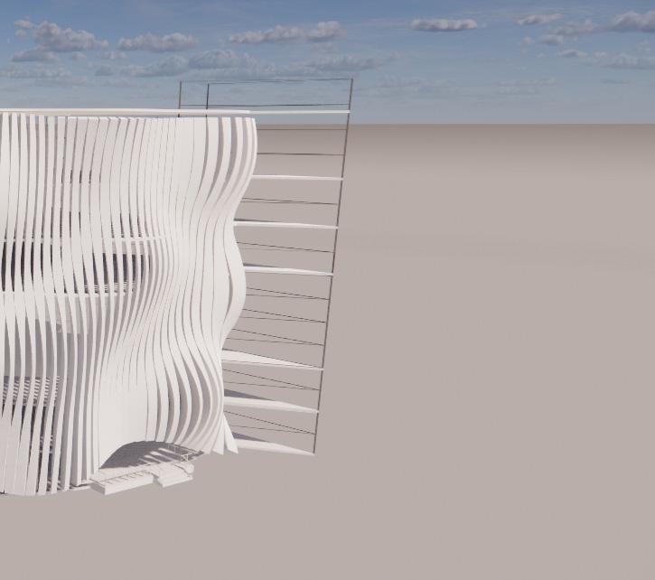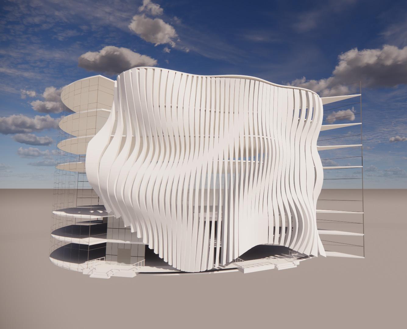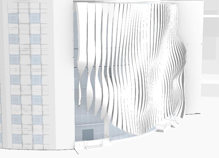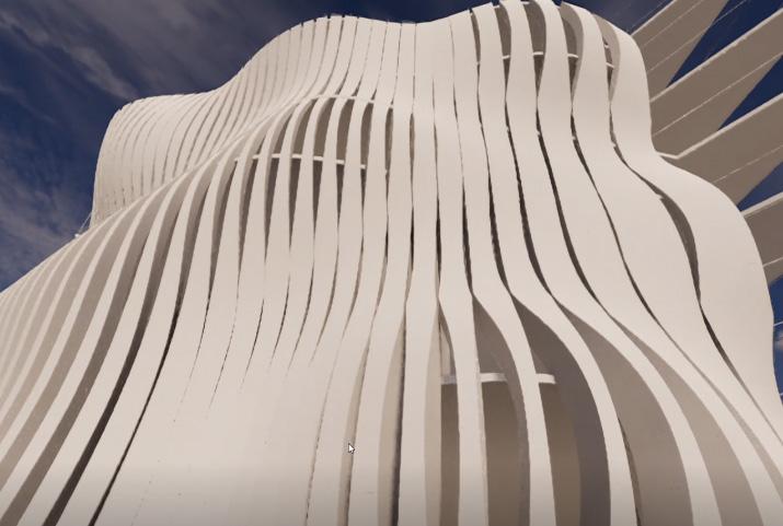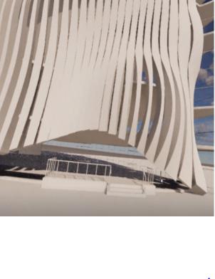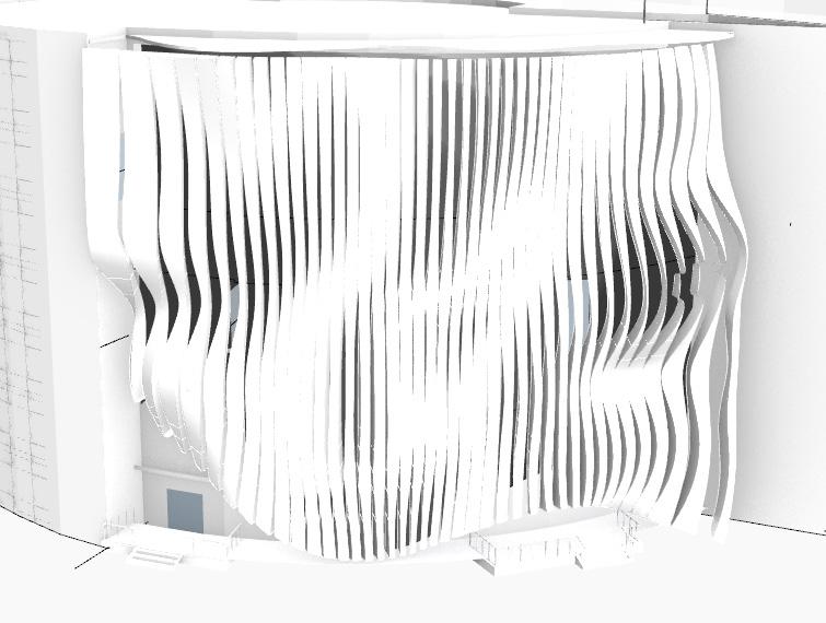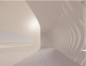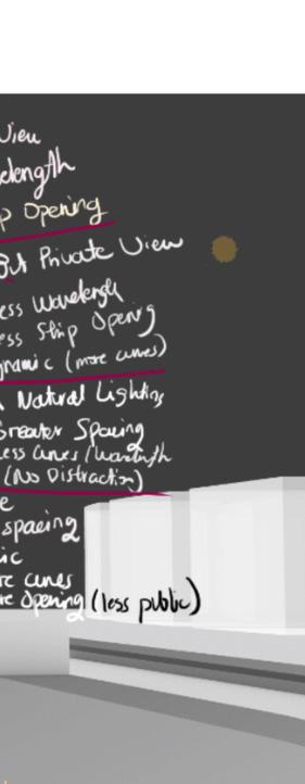 Reflection: The openings of the facade were too little and thus didn’t show enough variety, therefore it needed greater opening or at least the pattern of having descending voids between the strips at each concave curve can be more emphasized. The structure also needed to be added even though I’ve already made the code for it. I also needed to create a more interesting interior experience. The previous section I’ve done in the West also doesn’t seem to be applied during the VR shots, as it showed a way moroe simplified version of it that needs to be worked on.