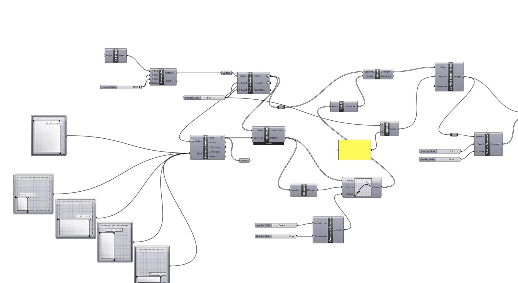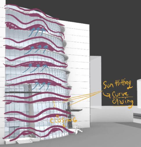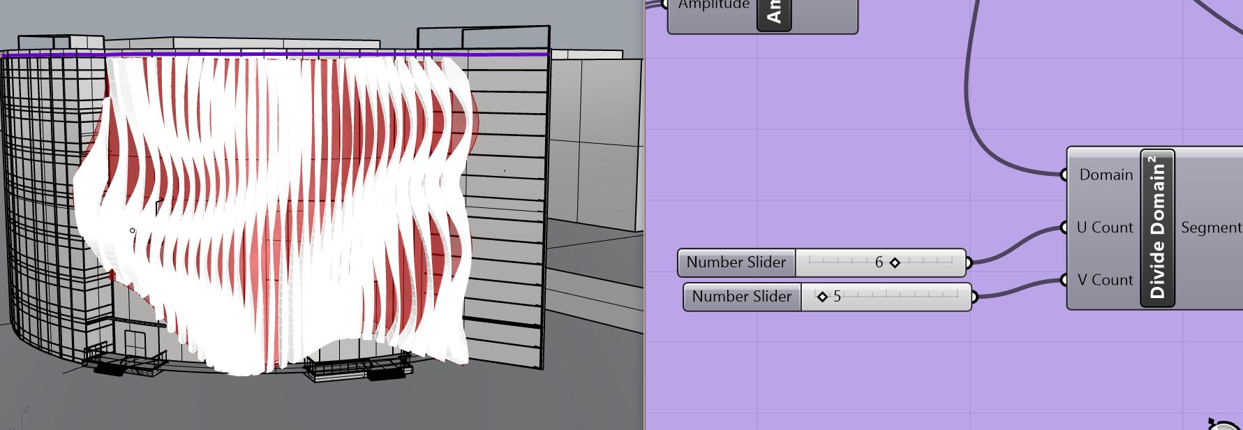 I struggled to make the curves in my facade more customized on Grasshopper as I attempted to do a design that’s extracted automatically through Grasshopper based on the simulation of solar radiation, yet it didn’t effectively work on my facade.