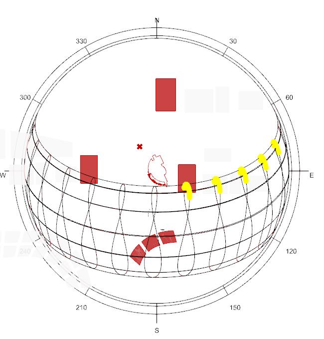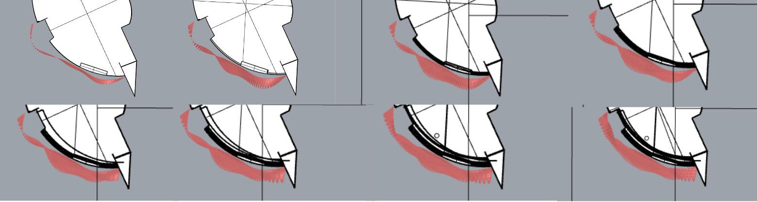 I’ve played with the graphs that change the coordinates of the curves in order to have more closed openings where it’s more radiated (white) to prevent excess heat gain in building during Summer (June-August) and have more openings in the black areas.
