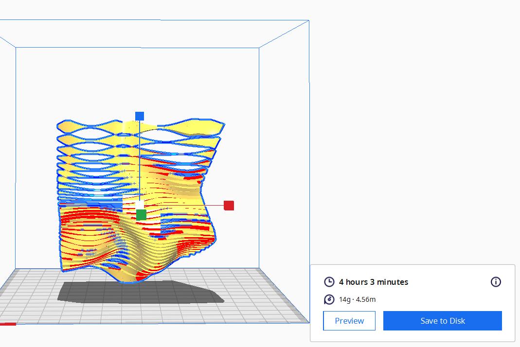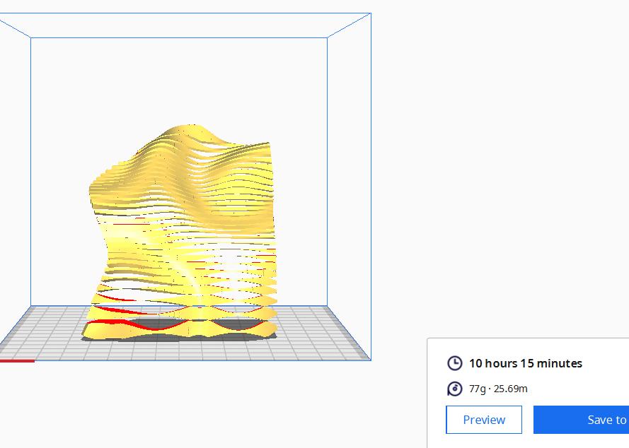 I kept rotating my model to see in which rotation will my facade print in the shortest time and the shortest time was 4 hours and 3 minutes.