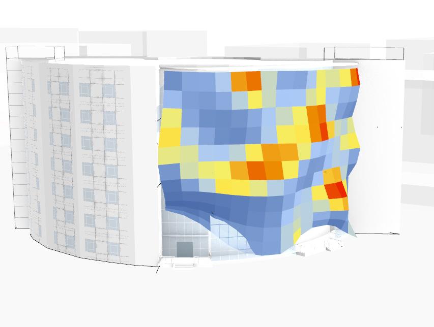 A suggestion is to perform this analysis also on the slabs to see how the sun is affecting the users from within the interior space itself (having the double skin facade the context in this case and the slabs as the geometry input).