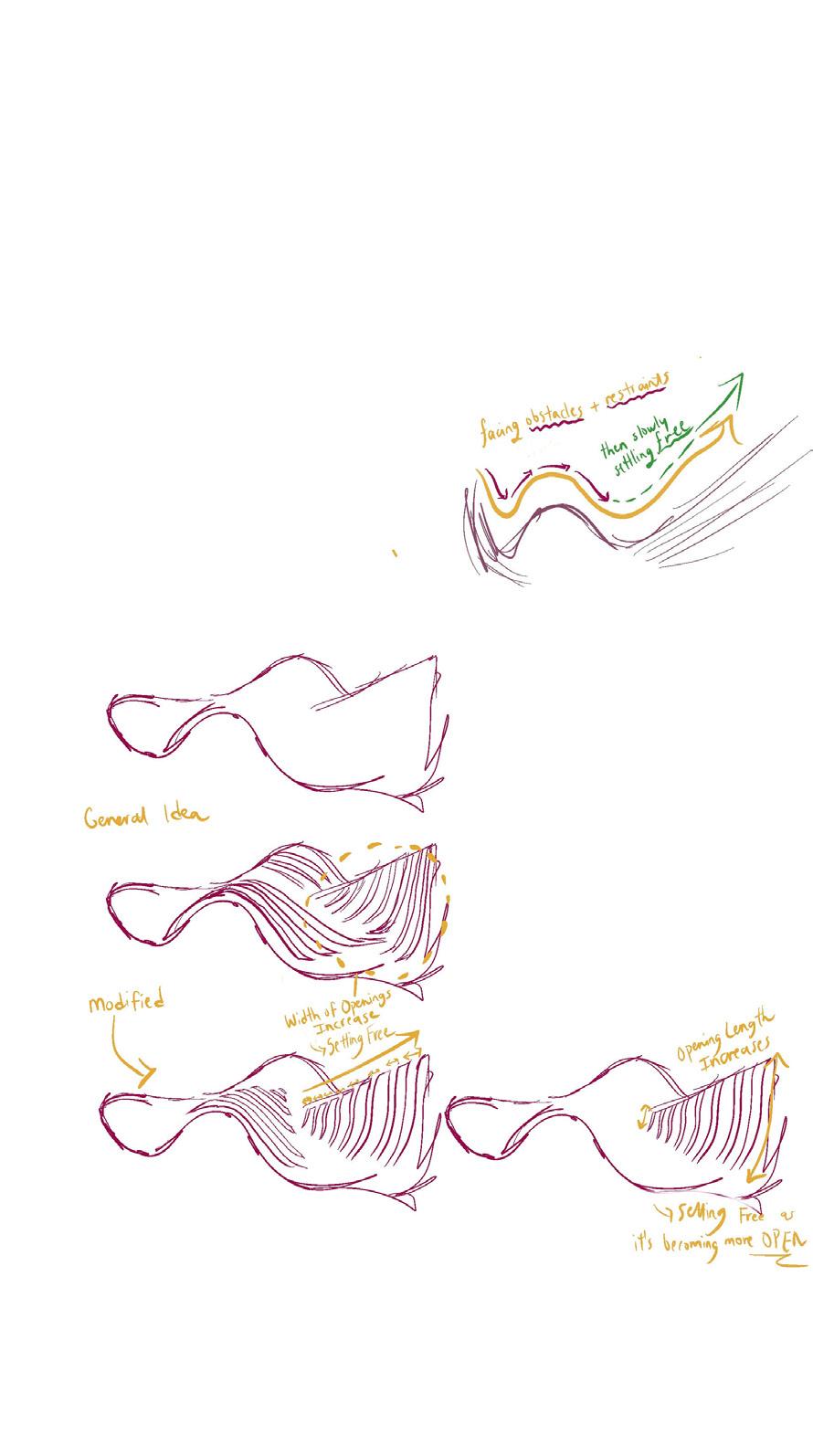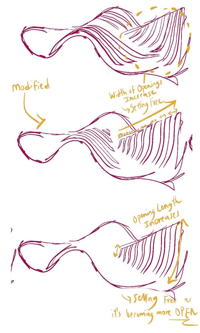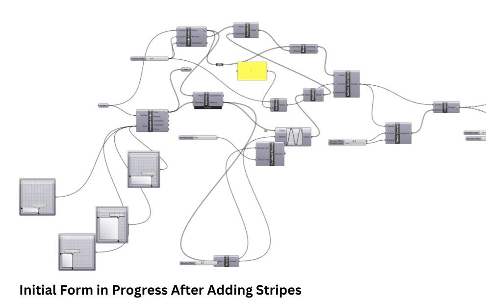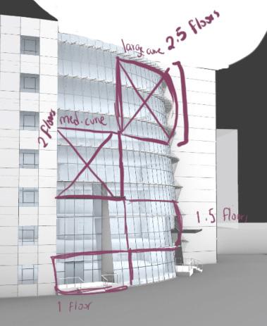 I did not know how to improve on my facade or how to diversify the slabs or even the actual complexity of the facade itself as I was thinking that it’s too simple with not even parameters to play with. Thus I attempted to think of more ideas such as”squinching” some strips to create one large opening between stripes when needed for extra daylight or heat. However, it wasn’t the greatest idea as it would’ve unnecessarily made the facade more complex for the sake of creating complexity rather than an actual justifcation.
