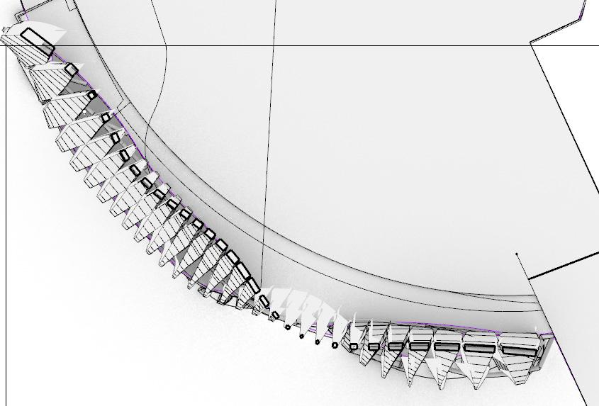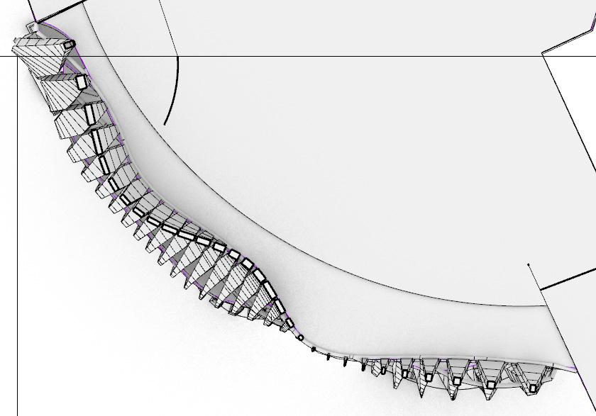 curve near slab not allowing a lot of sunlight as not needed for duct location