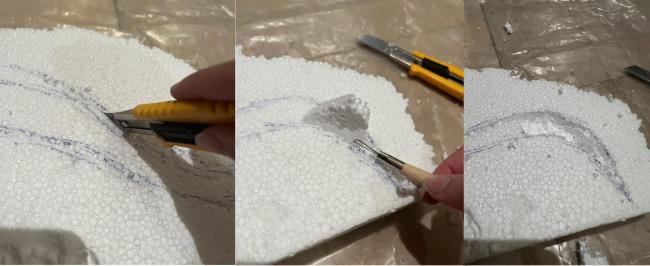 2) Use Cutter to Cut Shape of Shell & Pull Out Foam