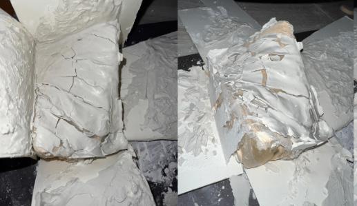 I missed the step of adding the plastic layer as a separator for gypsum. Gypsum & water connected well with this cast. Add plastic layer next time for removal to see actual effectiveness.