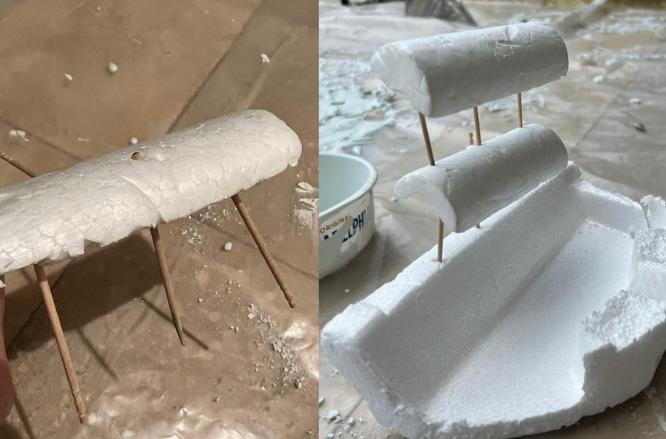 Materials Used: Gypsum, Water, Bedsheet, Plastic Wrap, Wire, Nasebian, Tape, Cardboard Box, Glue Gun, Cardboard