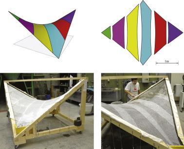 Fig. 4 Design process for prototype concrete shells using a hybrid cable-net and fabric formwork