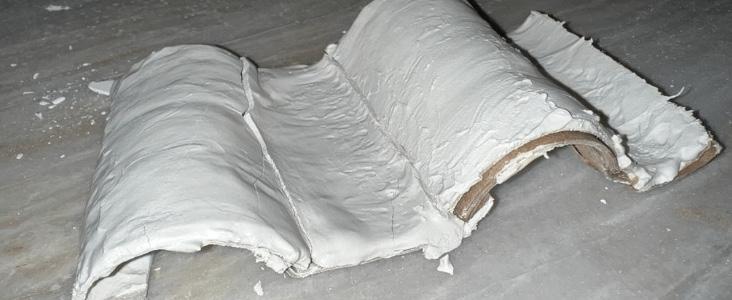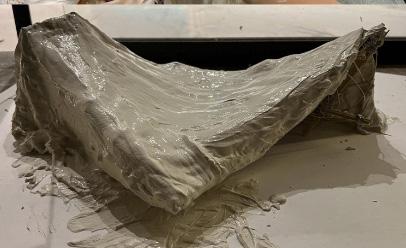 One of the last trials in experimentation with fabric formwork using gypsum, water, and the cable net technique
