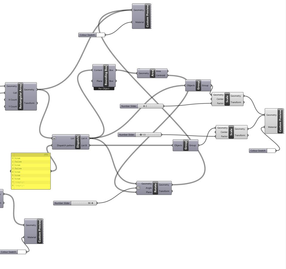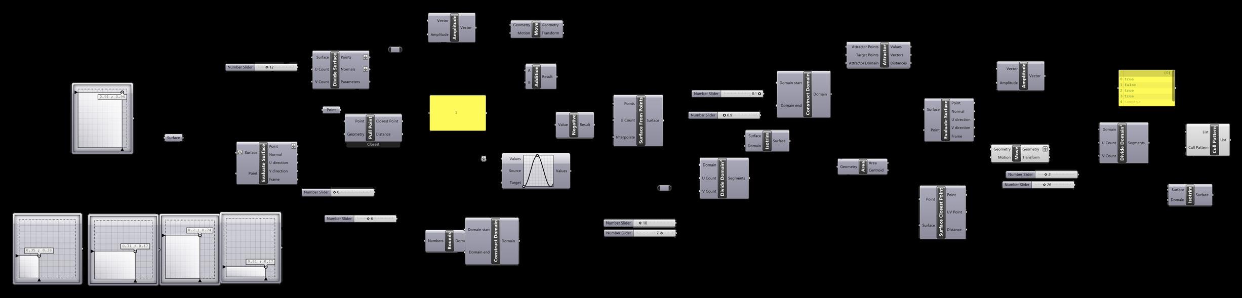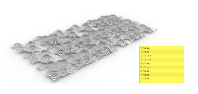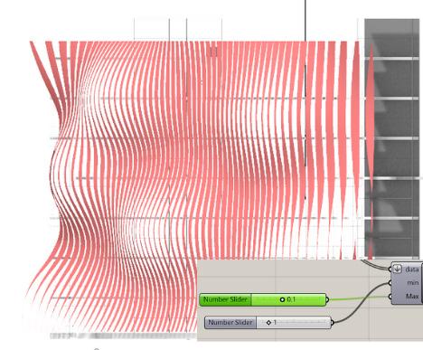 This was another attempt to have the darkest areas from the Radiation analysis extracted as data and be used to allow for openings of my strips to increase at these areas, however although it worked, the design created could be further improved aesthetically and to fit the spatial requirements.