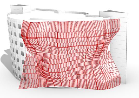 Automated design based on simulation made the facade more protruded inside which provided the same aspect as old design yet wasn’t as aesthetically pleasing.