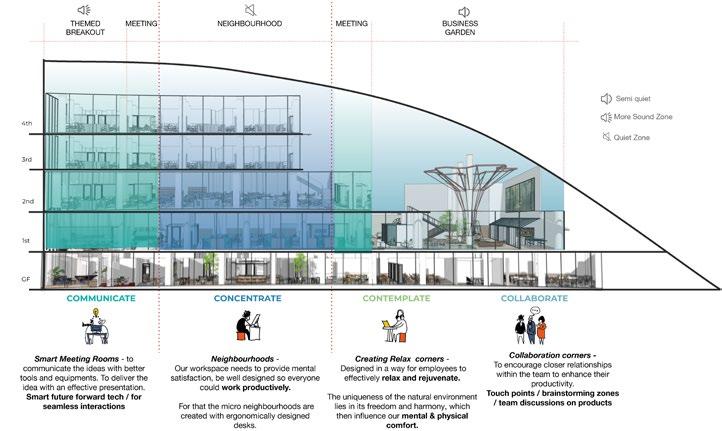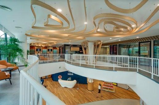 Design Brief for Planning: Nestle’s workplace moved towards the hybrid way of working. The zoning for di erent activities was uidic in nature. Created destinations with the principle of 4C's i.e Concentrate, Contemplate, Collaborate & Communicate to translate the brands in the various spaces.