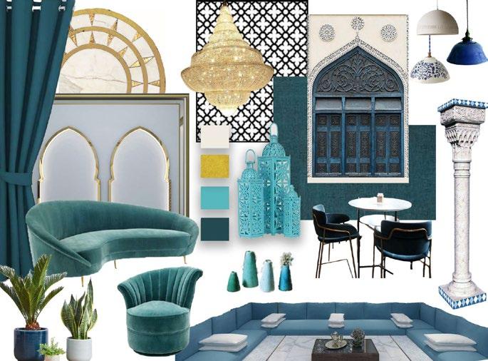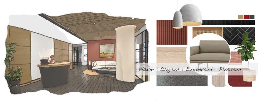 Design Brief : To design a 500 sq.m. Hotel Lobby. Layout Planning along with sections, elevations, re ected ceiling plan, ooring layout etc. Imagining a theme and to present the idea behind the design using a mood board.