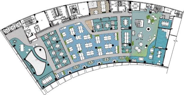 of the new headquarters of the talent acquistion compay SHL. The oorplate is divided by a central core creating two di erent working zones.