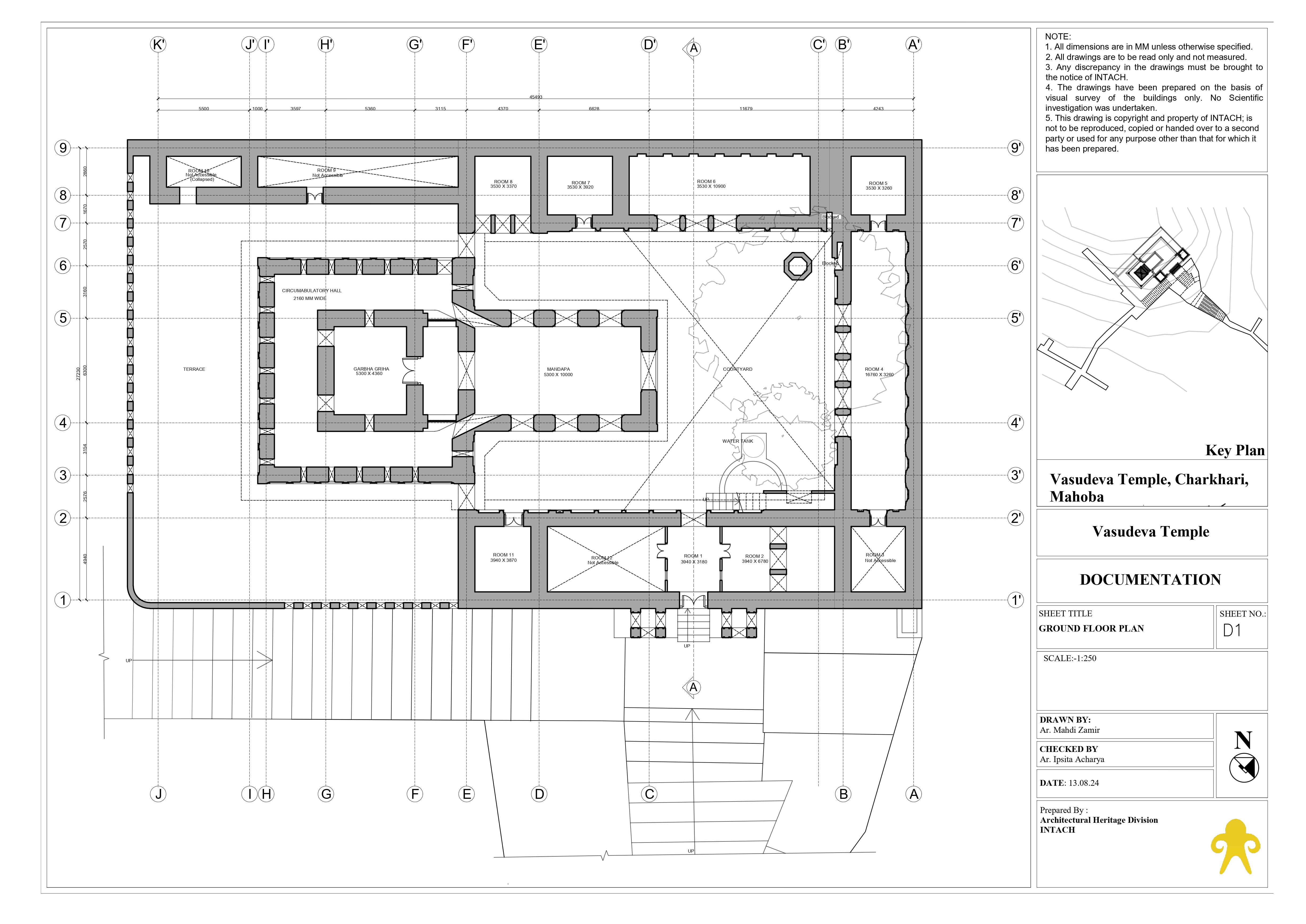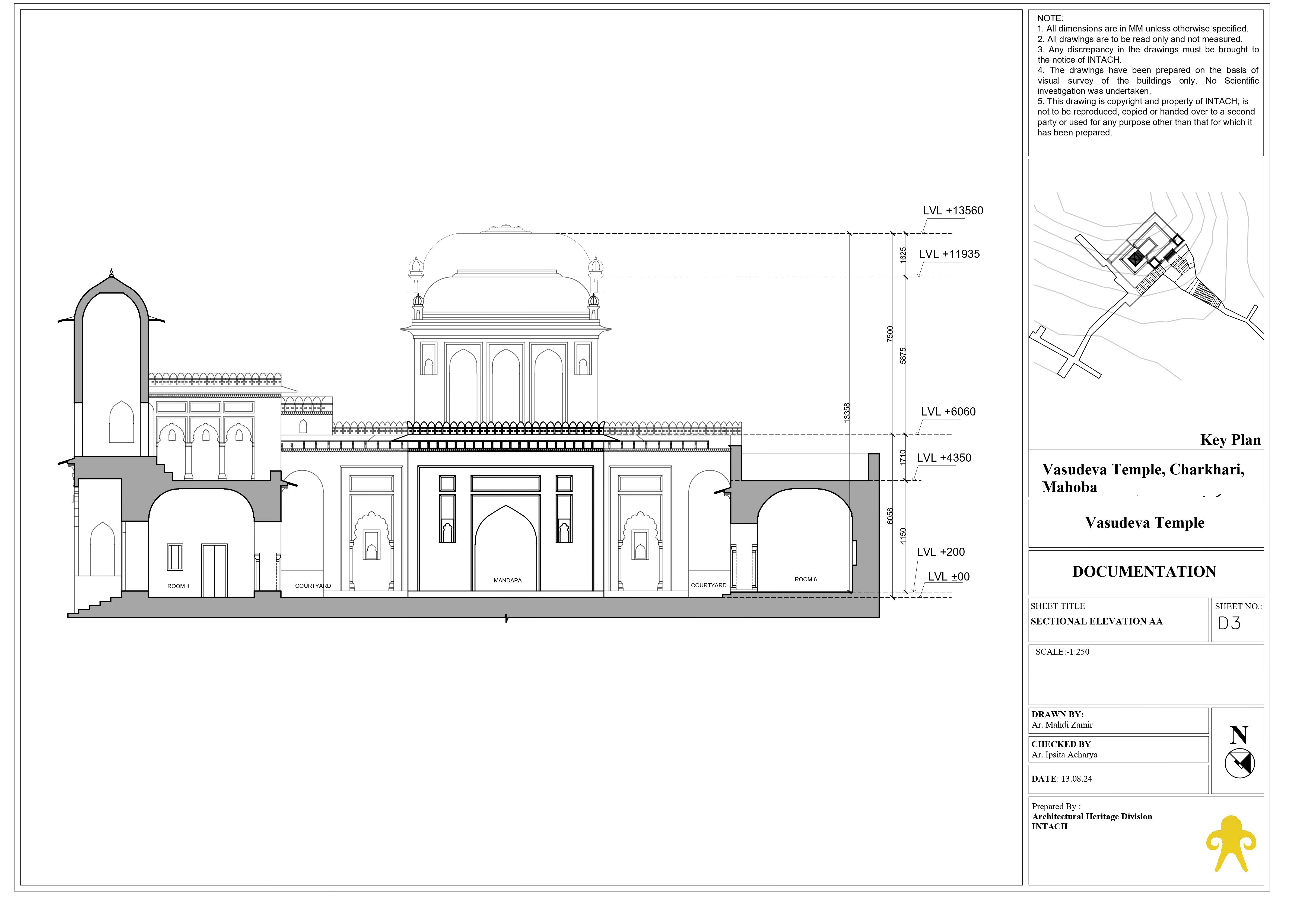 Drafted the floor plans and sectial elevations for the Vasudeva Temple after the documentation done on site with the team.