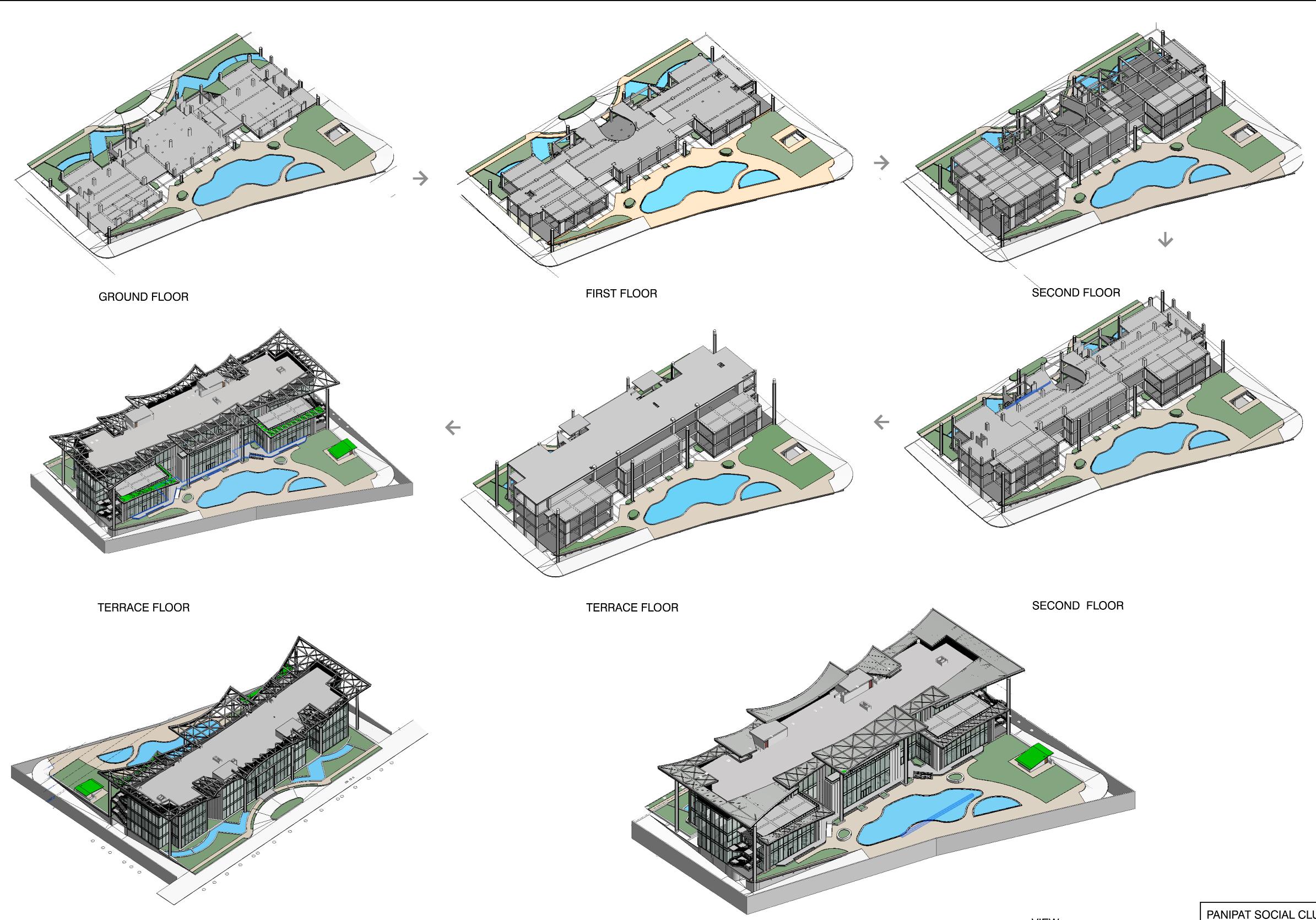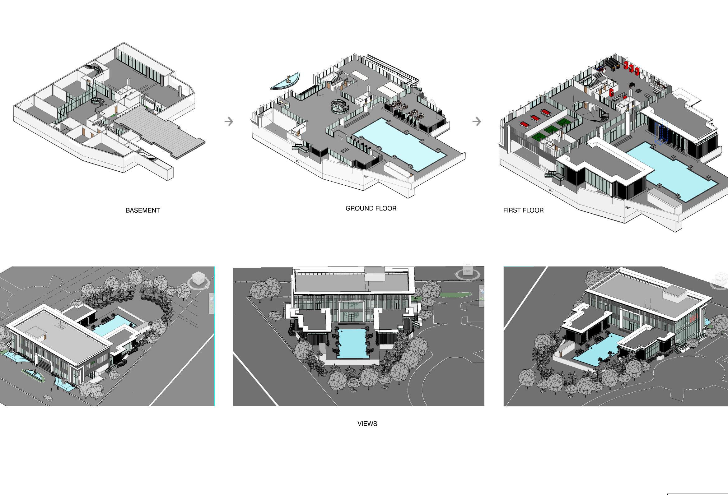As my first and most challenging project during my internship, M3M Sports Club helped me hone my Revit skills and navigate complex coordination issues with sanctioning authorities. The site presented unique challenges due to high-tension line setbacks, but through teamwork and problem-solving, we su ccessfully overcame these obstacles.