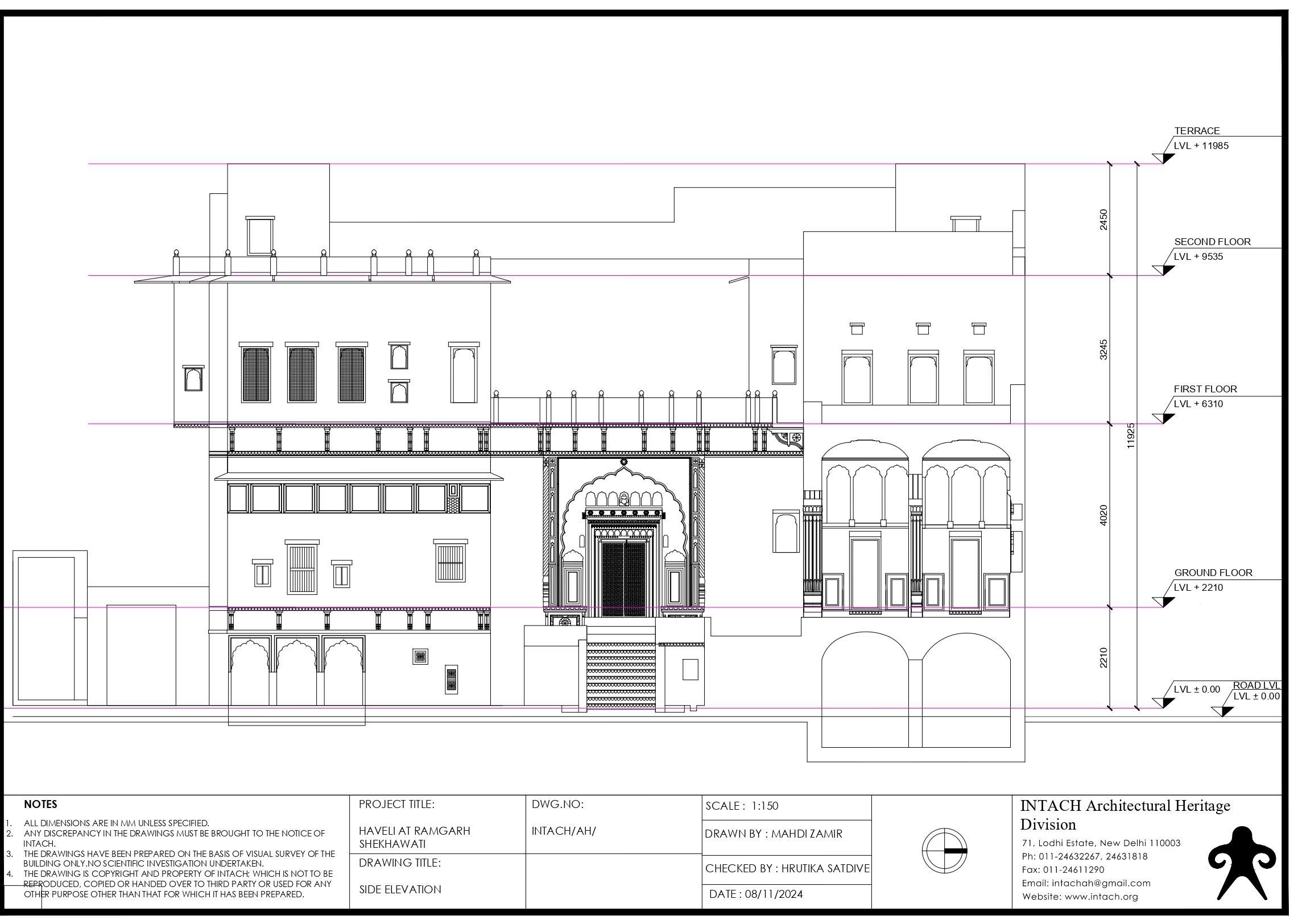 Drafted the floor plans and elevations for the Haveli at Ramgarh Shekhawati with the help of documentation done by the team and photographs.
