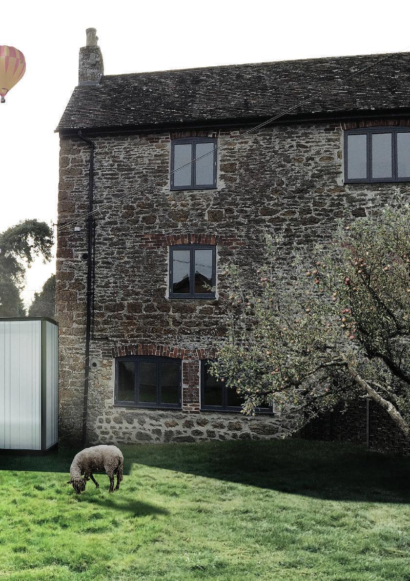 Die Wand im Inneren, ... leistet seinen Vorteil in vielerlei Hinsicht. Als Erstes und O ensichtlichstes unterstützt es die Dachkonstruktion, die auf dem einen Ende an die Wand des bestehenden Gebäudes befestigt wurde und auf dem anderen Seite auf der Wand ruht, was uns eine säulenfreie Umgebung verscha t, wodurch es buchstäblich keine Grenzen im Innenraum gibt. Das Nächste, was durch die Wand erreicht wird, ist eine vorsichtige Teilung des o enen Raumes, welche o ene, geschlossene und enge Räume sowie Nischen erzeugt. Versteckt in seiner Solidität, bietet es nicht nur Verstauungsmöglichkeiten, sondern verfügt es auch über Platz für ein Waschbecken und einen Ofen für kalte Tage.